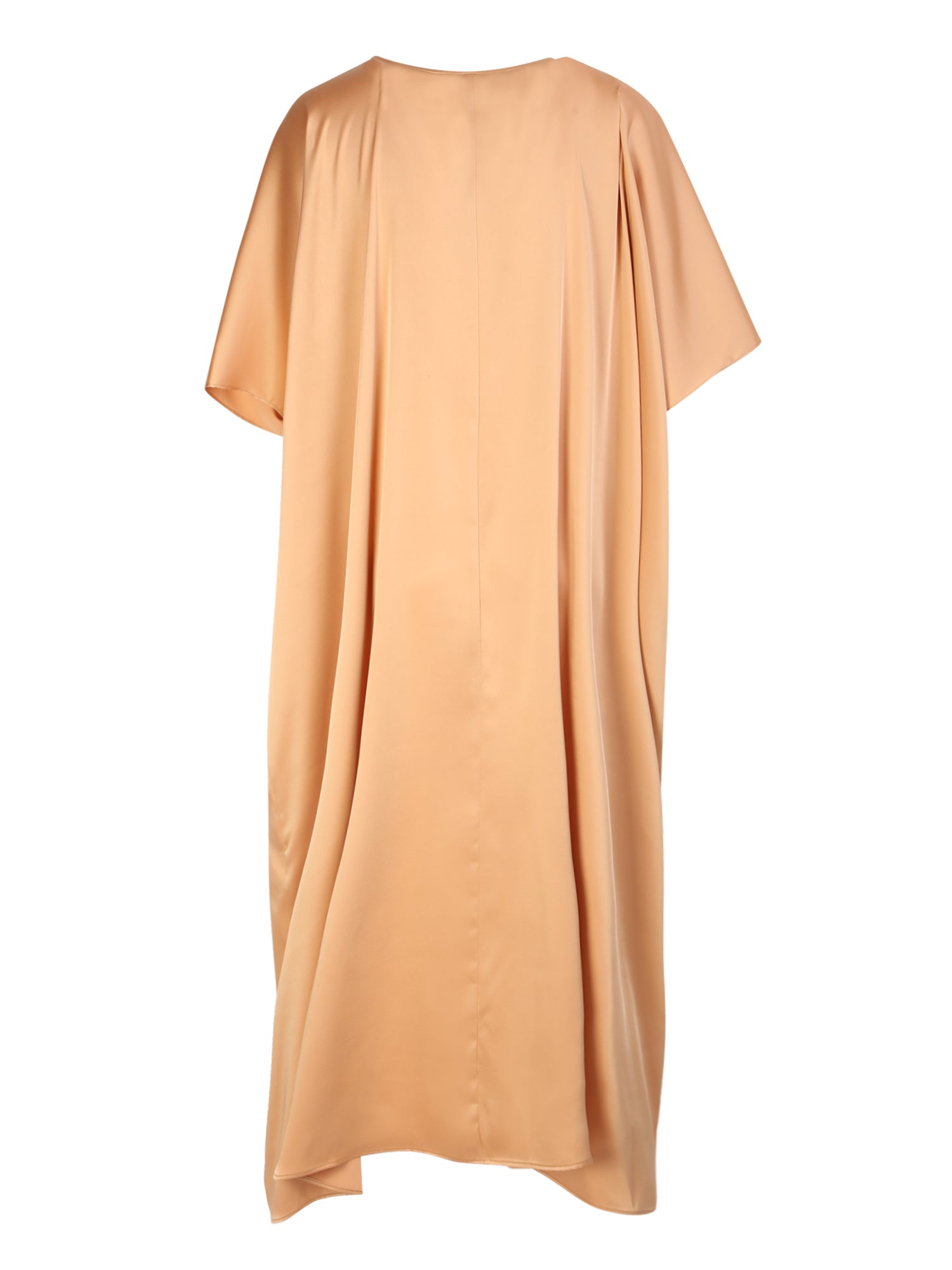 Gold satin kaftan by Blanca Vita it features an innovative and refined design, boasting workmanship that pays attention to the smallest detail