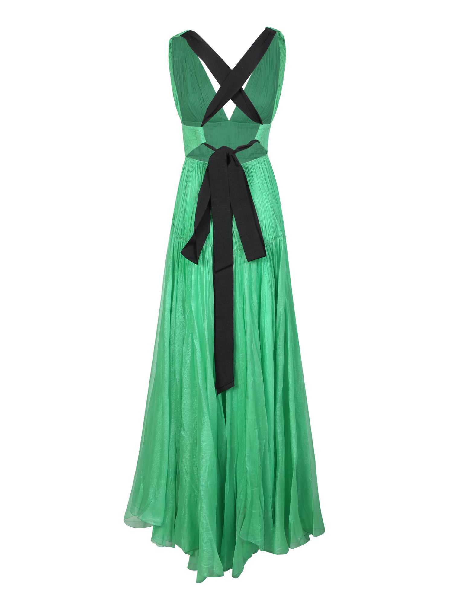 Green Calliope dress by Maria Lucia Hohan precious and refined style is defined by muslin long dress enriched by clean and soft lines
