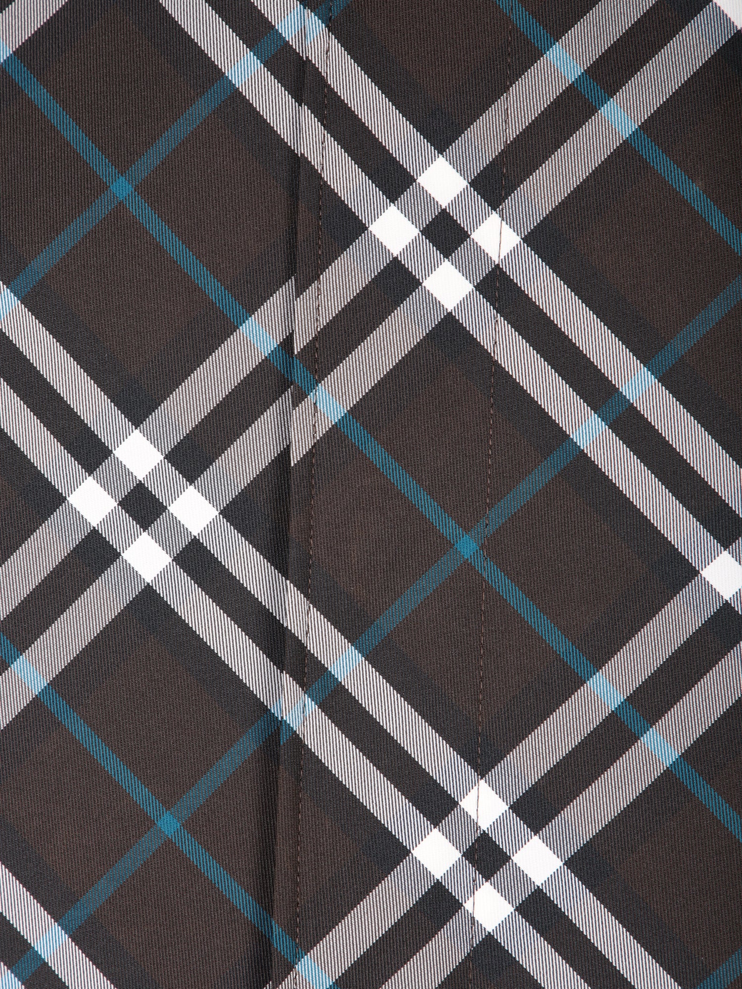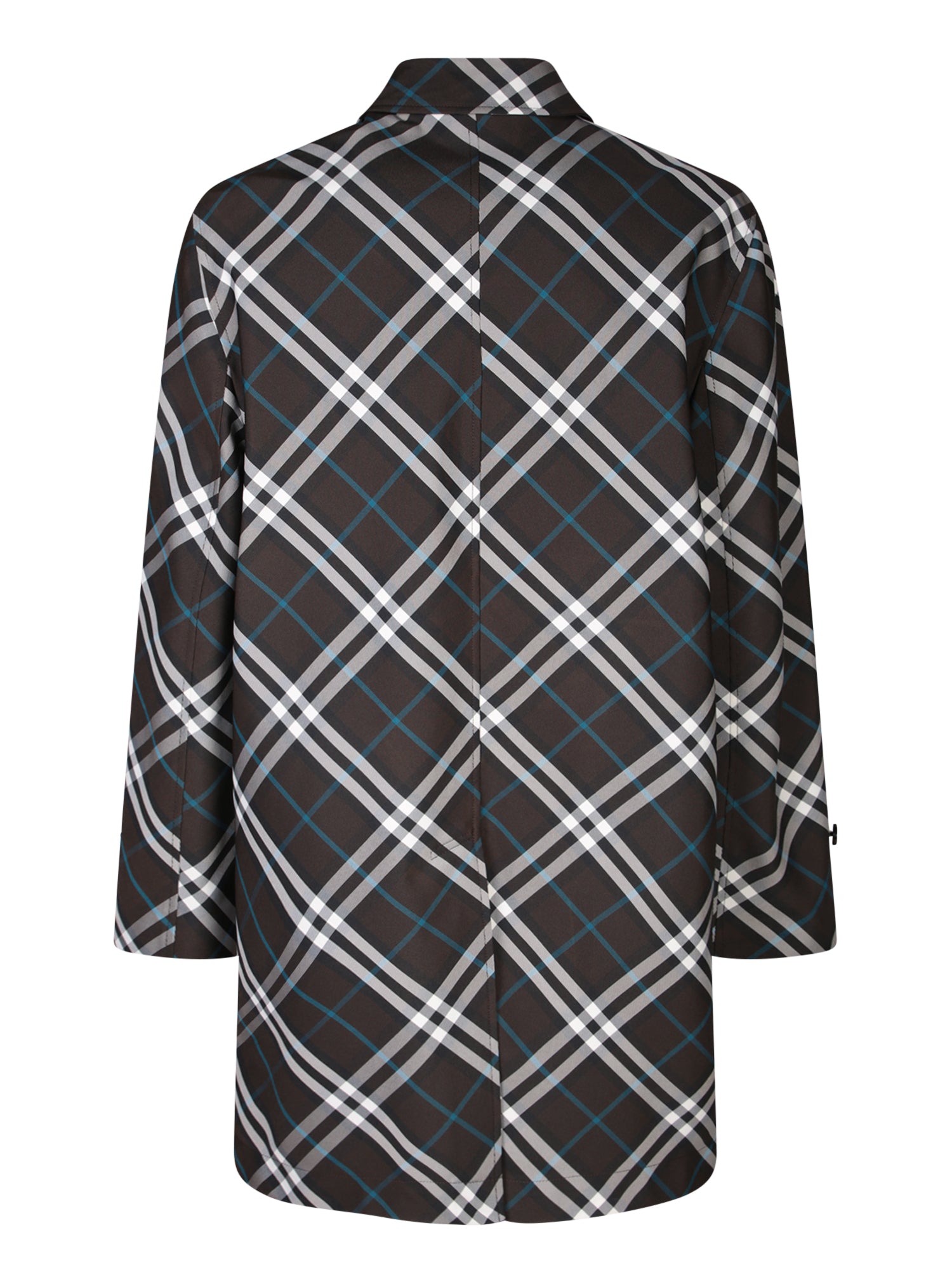 Check print coat with button closure and classic collar.
