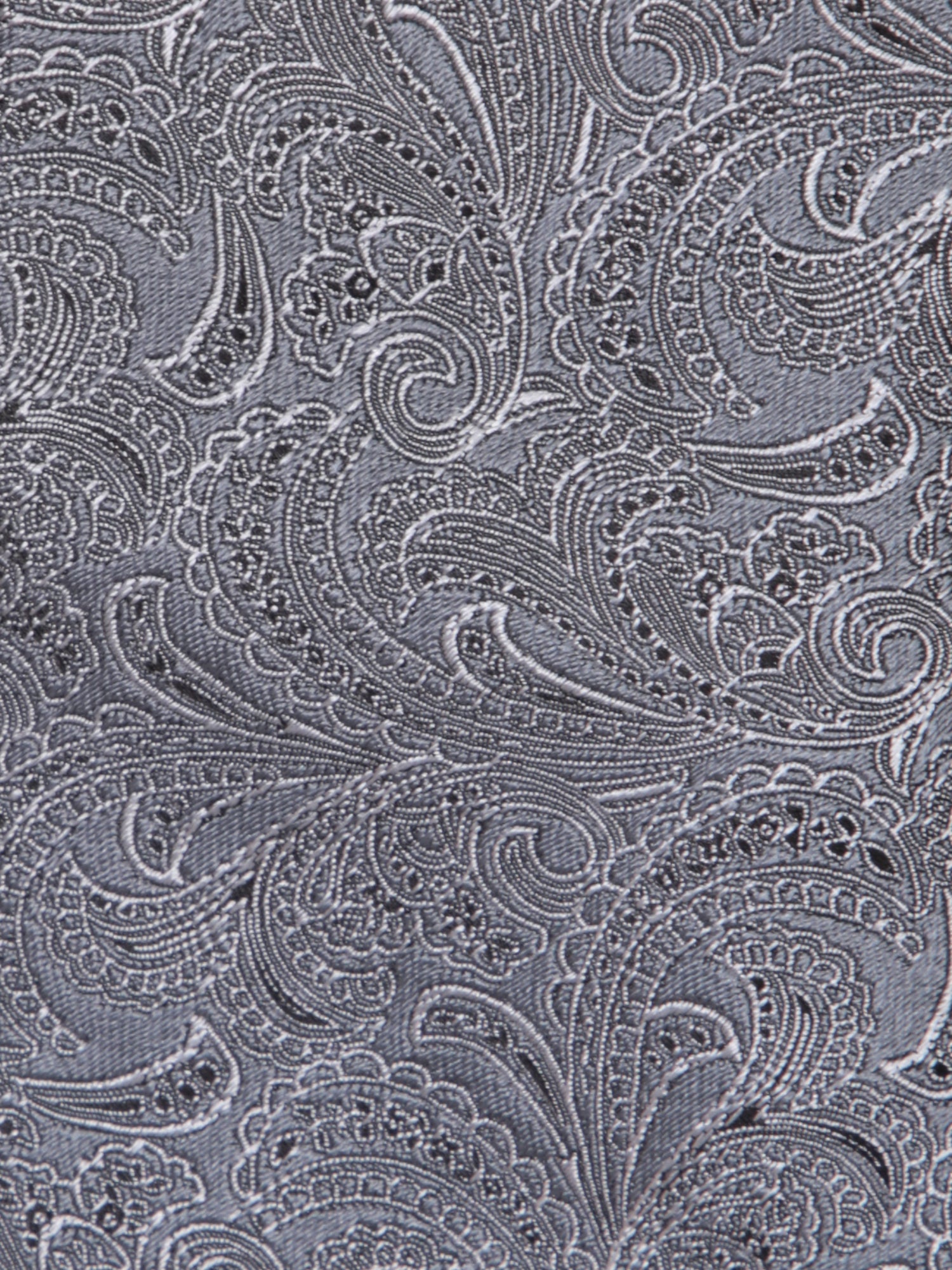 Silk tie with paisley print. High-quality finishing. Discrete brand logo.