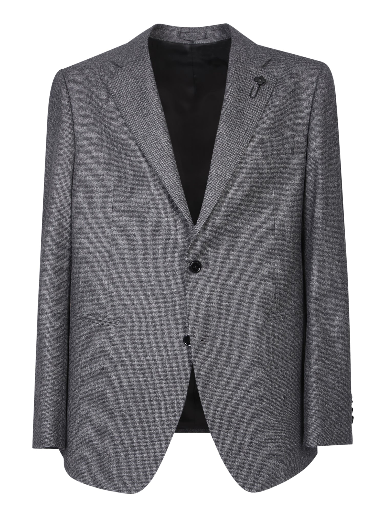 Tailored suit in wool blend fabric. Slim fit cut with two-button closure. Subtle logo pin on the lapel.