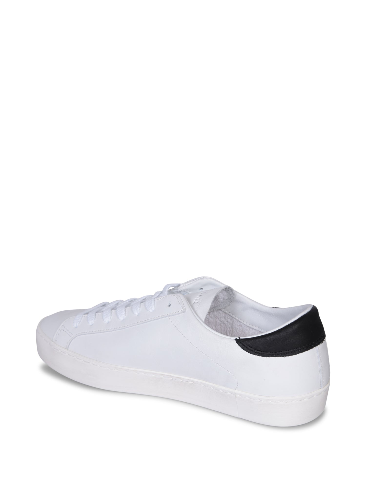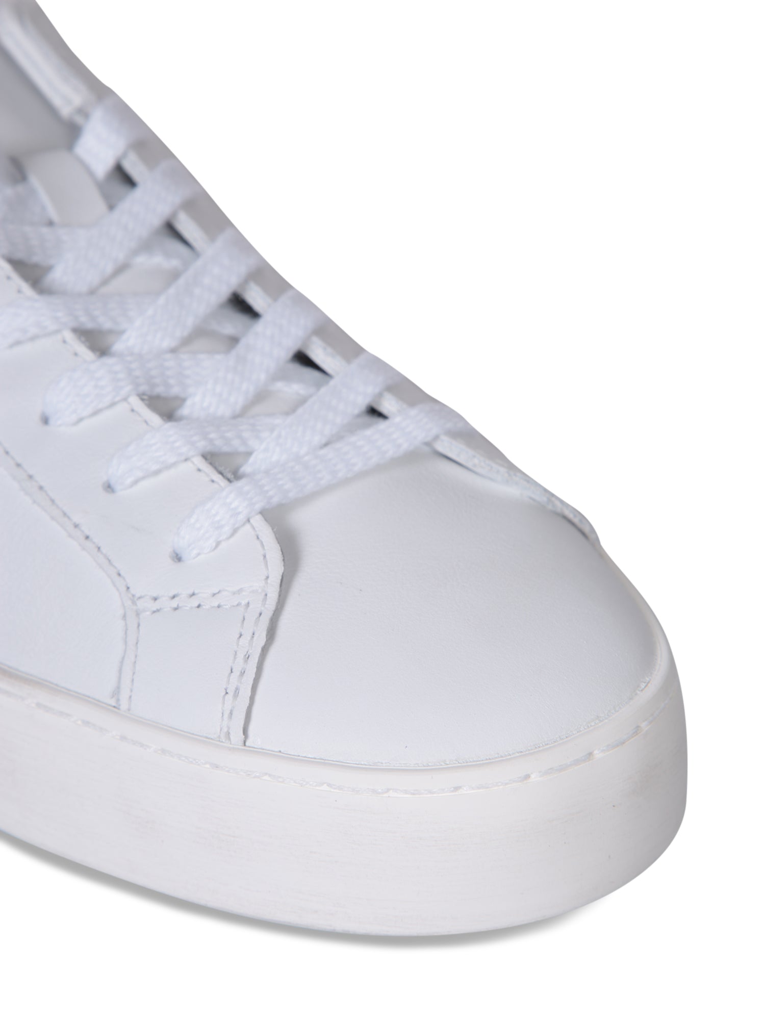 White calf leather sneakers. Round toe. Lace-up closure. Logo detail at the back.