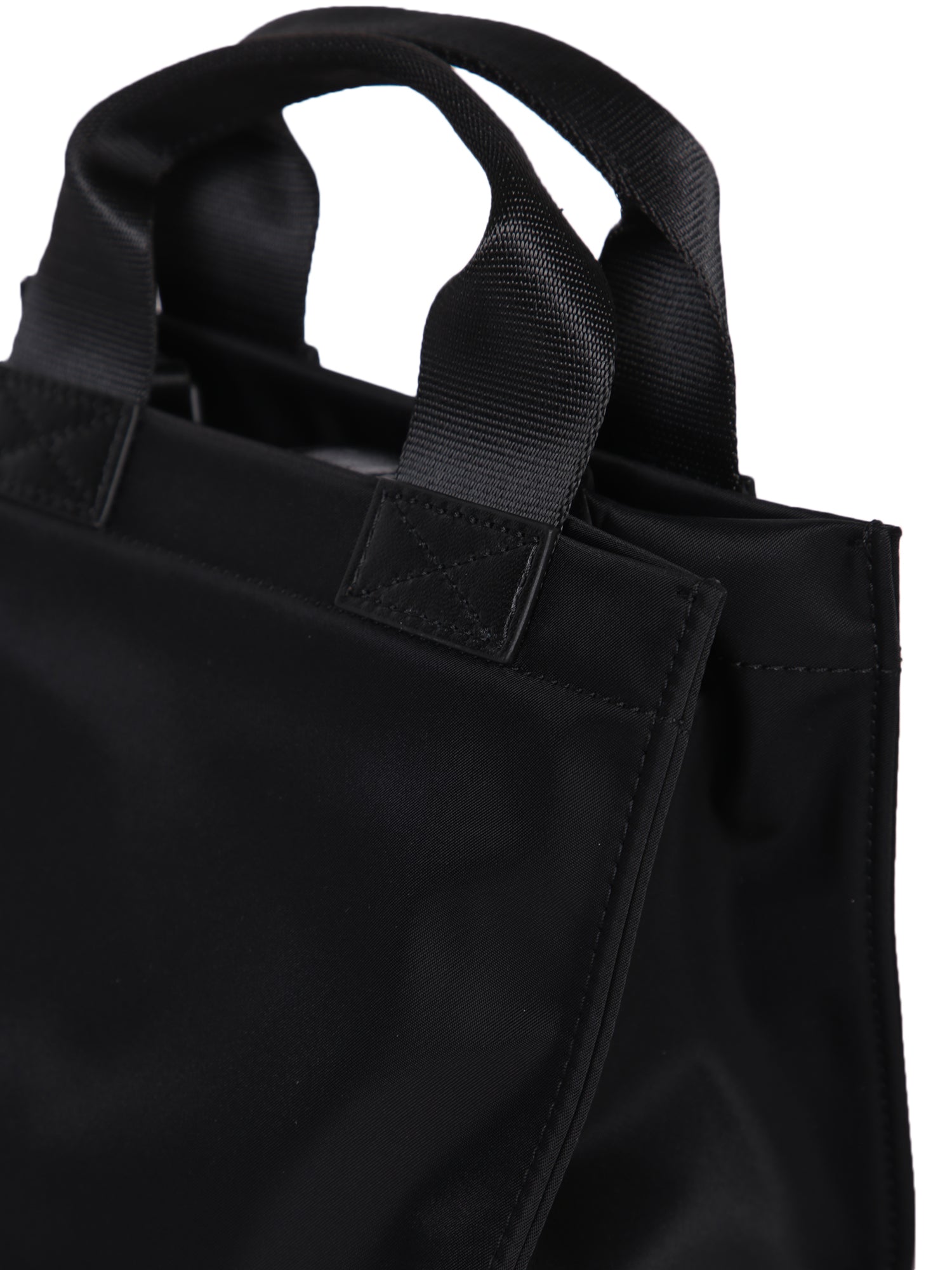 Sturdy handles, adjustable and removable shoulder strap, snap closure.