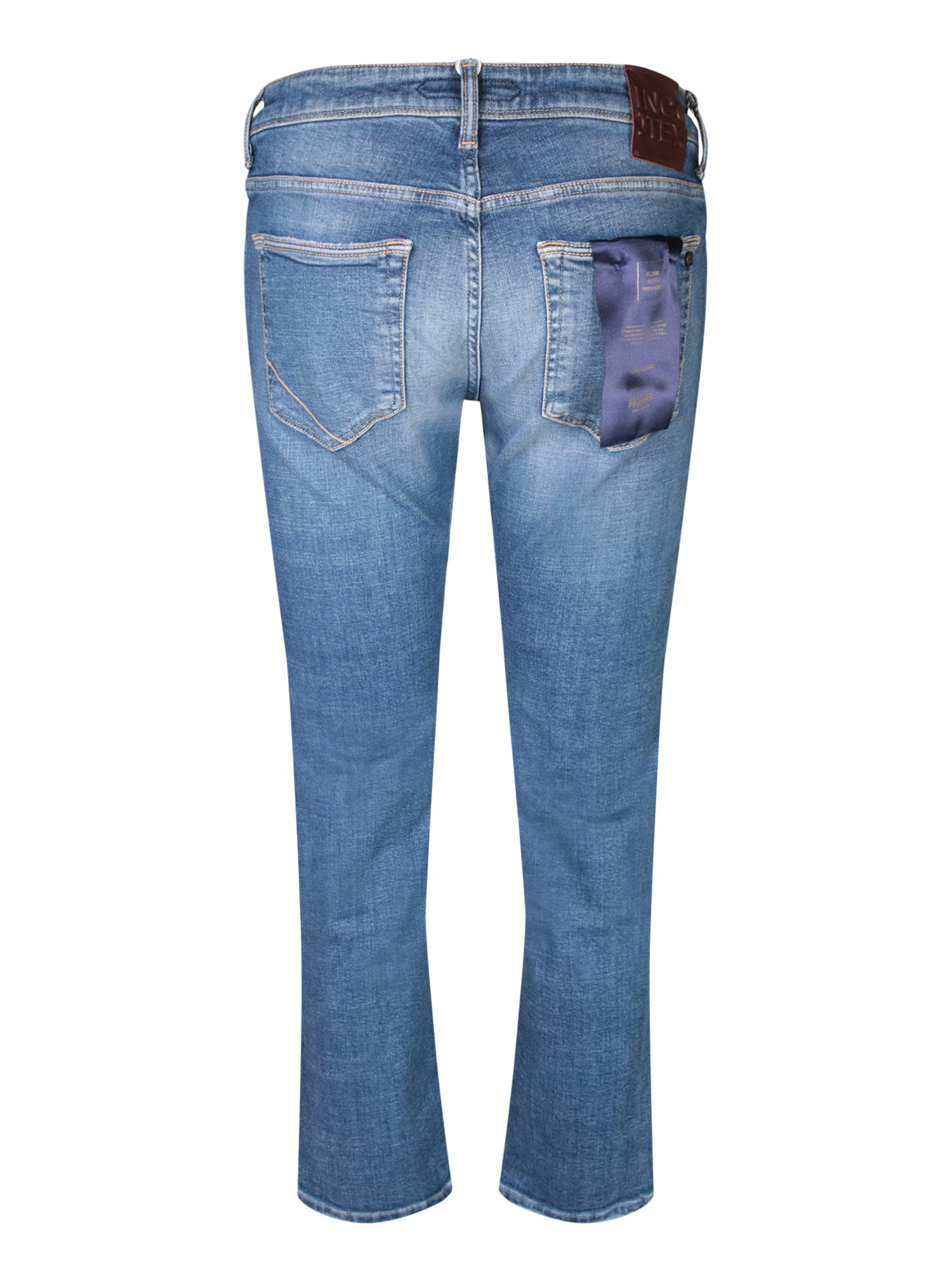Crafted with a contemporary cut, these blue jeans feature distressed details that enhance a bold, urban look. The medium blue shade is versatile for daily pairings.