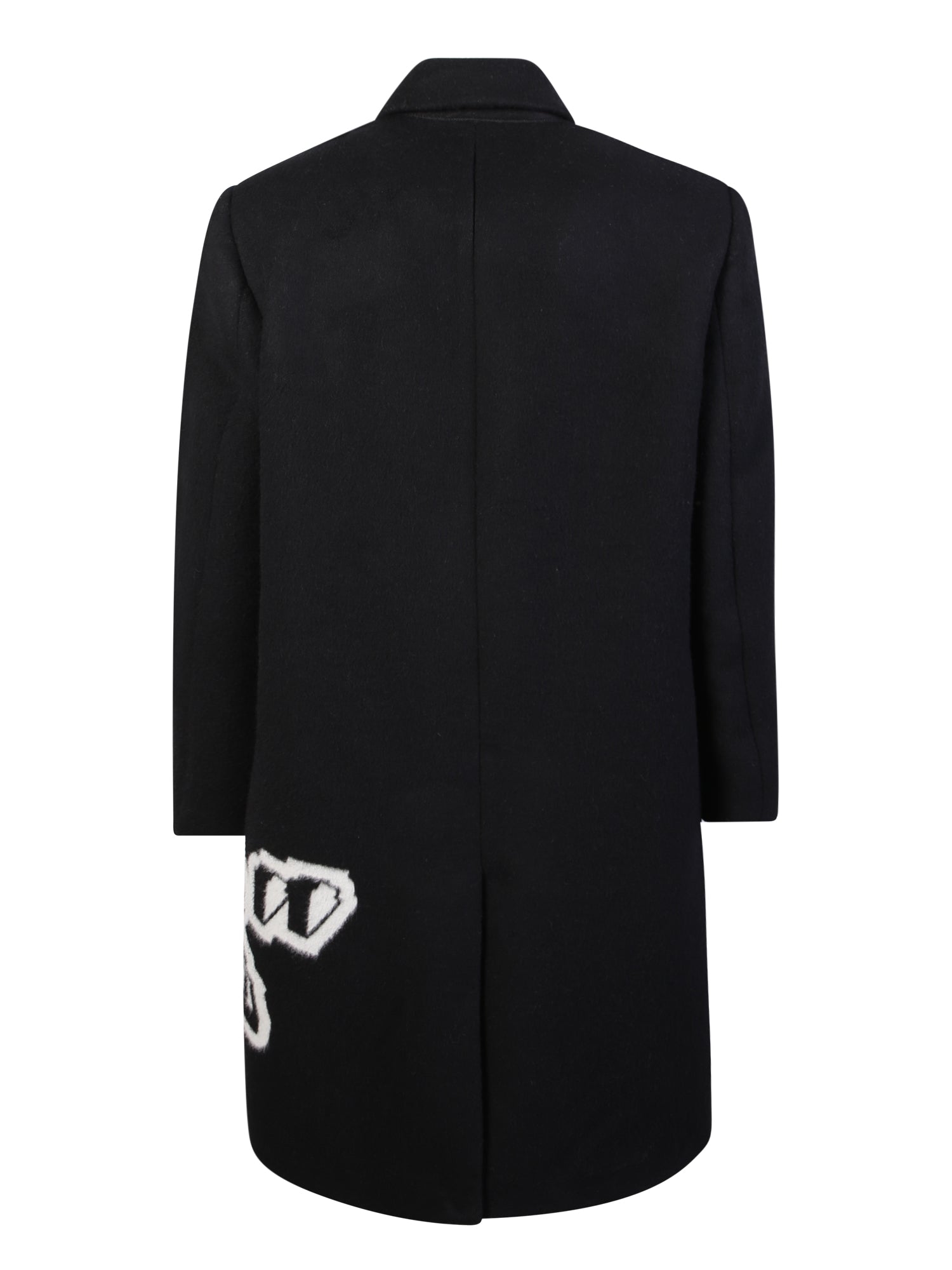 Single-breasted coat with graffiti print by Off-White. The brand adds an irreverent touch to formal tailoring to make this garment youthful and innovative