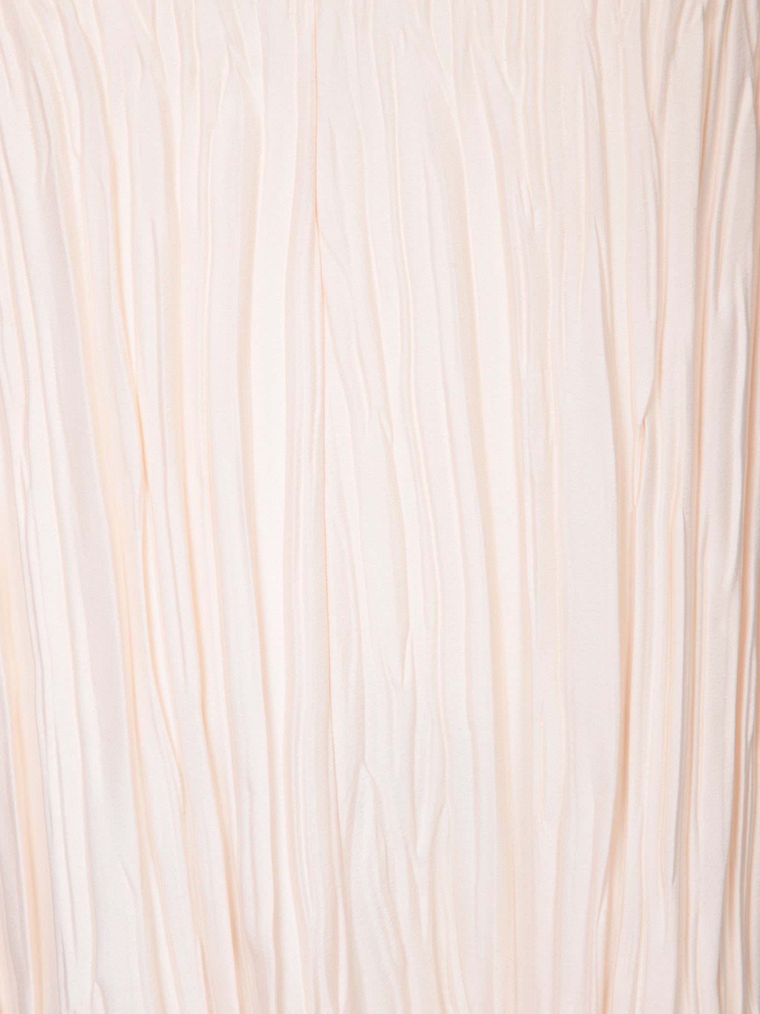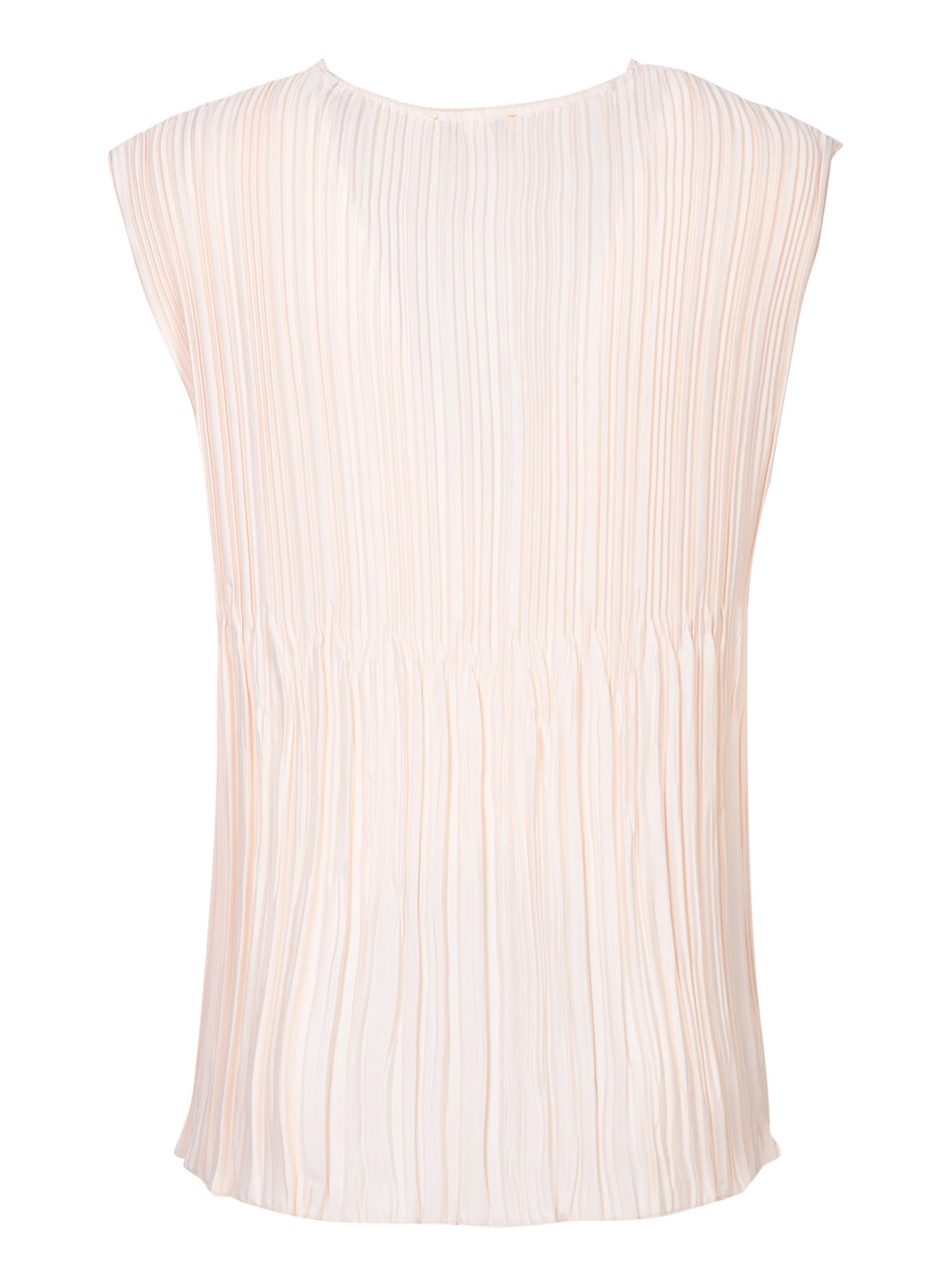 Sleeveless blouse, pleated crepe fabric, V-neckline.