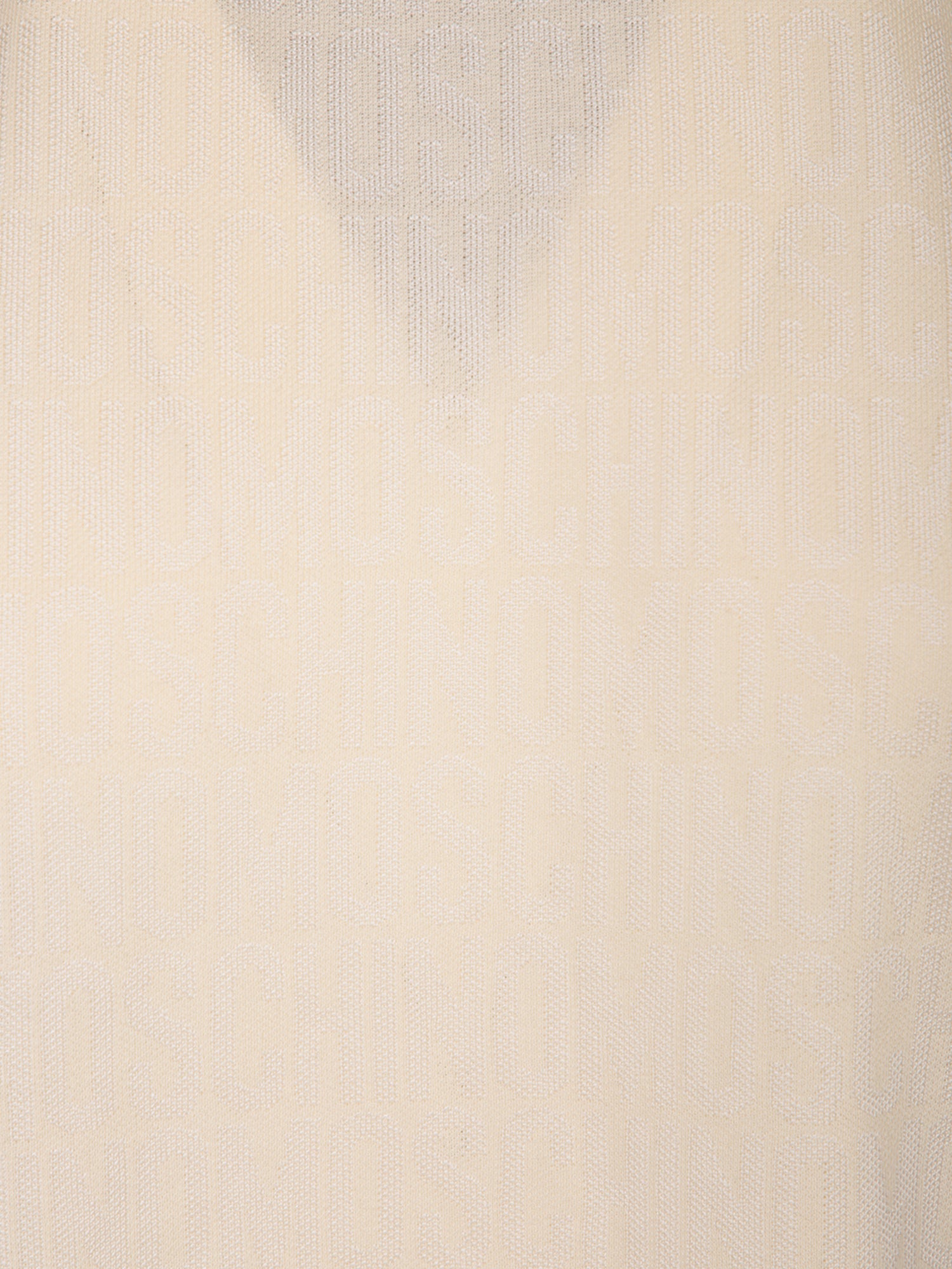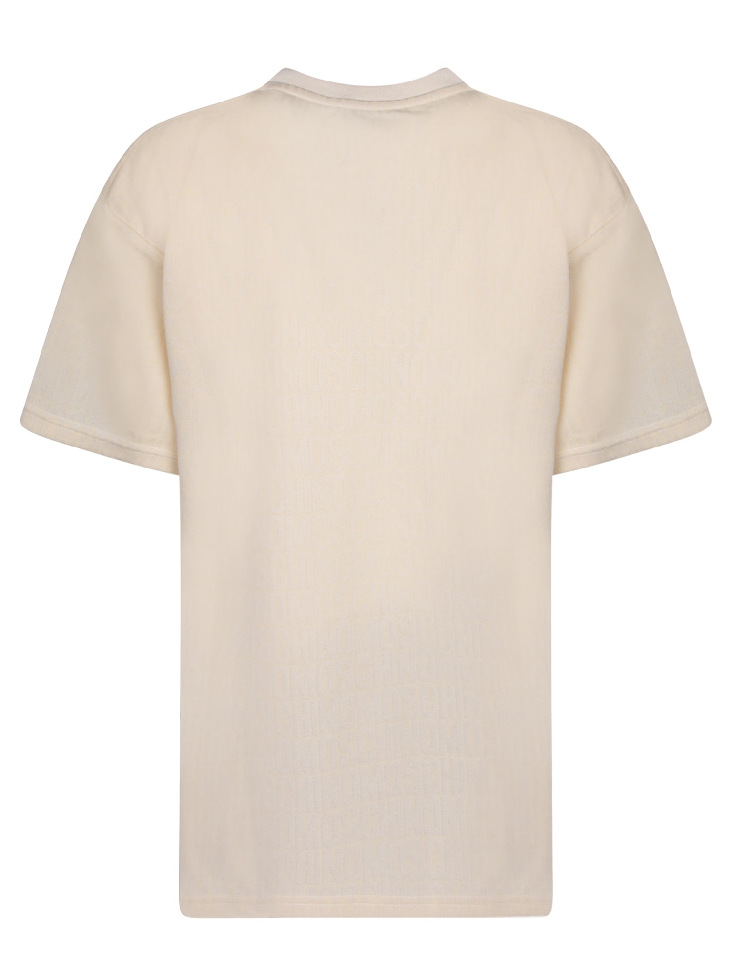 Ivory color. Tone-on-tone Moschino logo print. Round neckline and short sleeves.