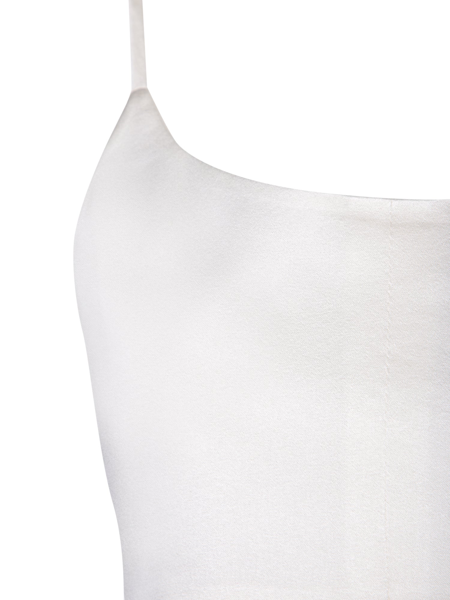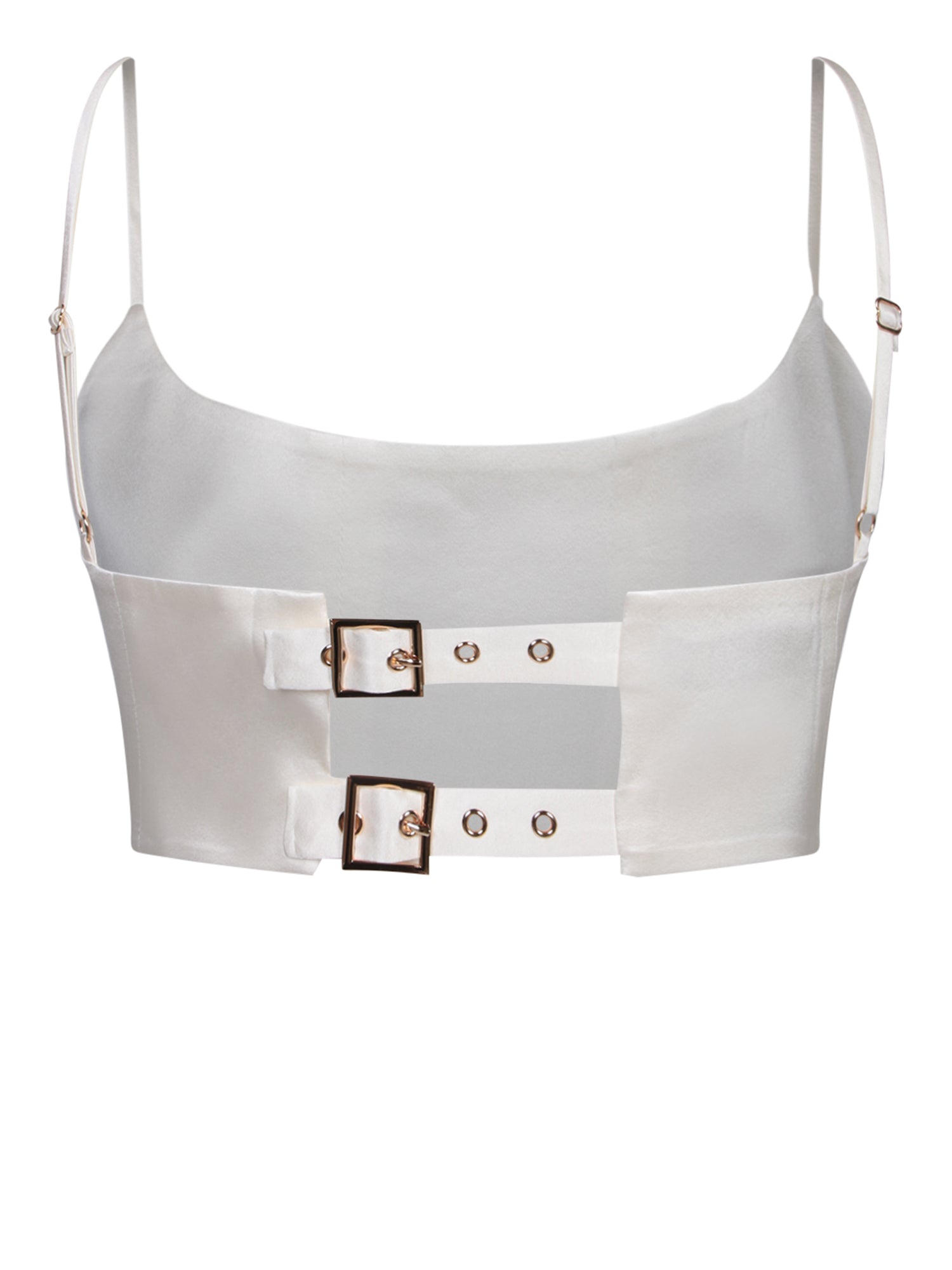 Short ivory satin top. Adjustable thin straps. Metal buckle closure.