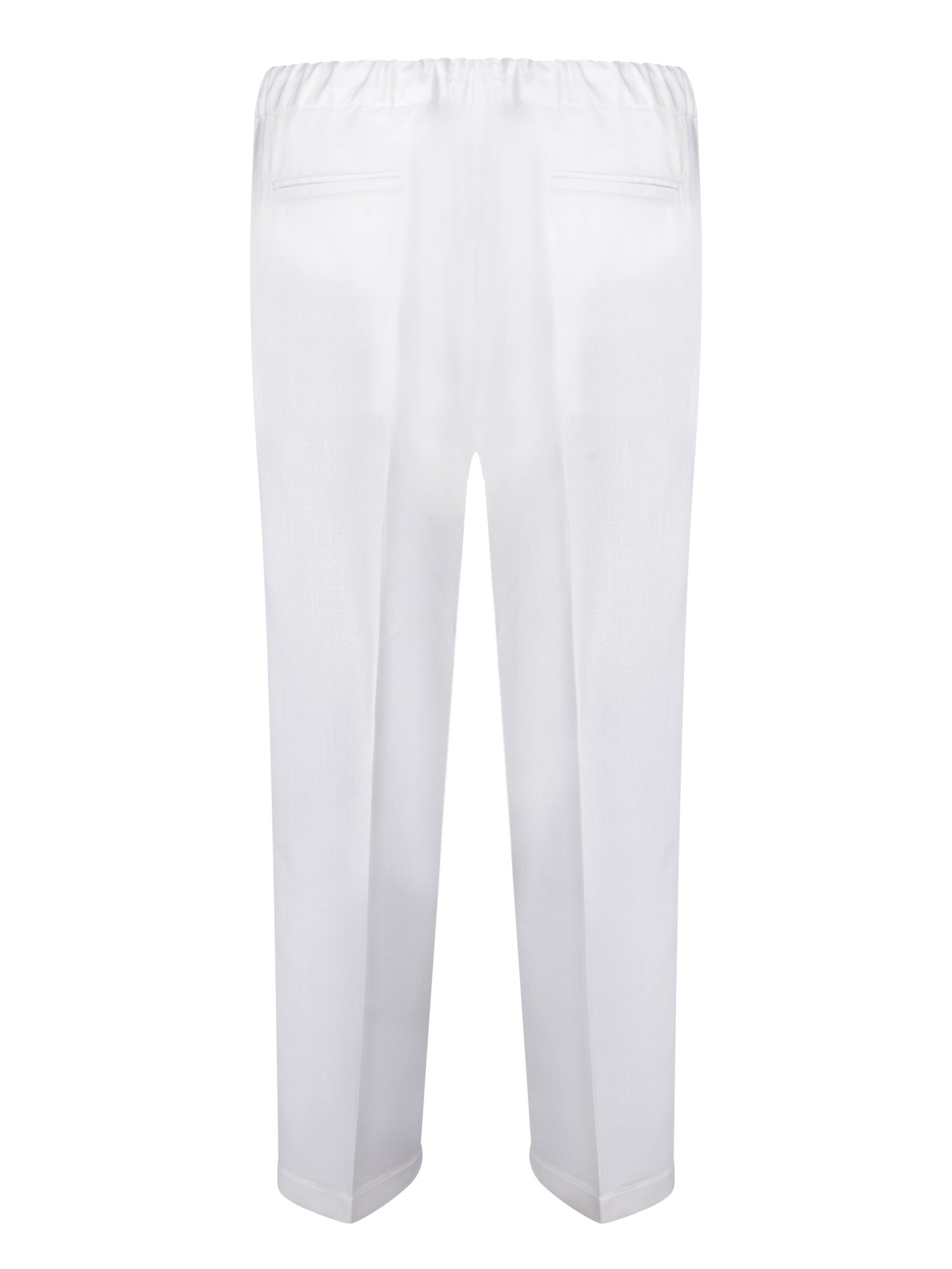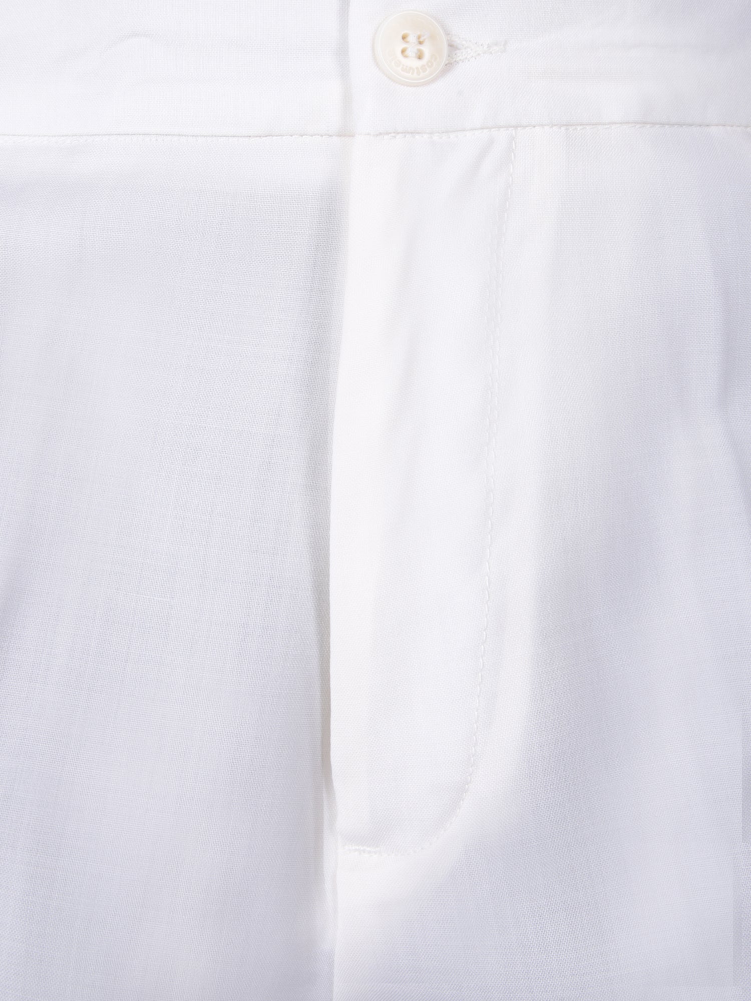 White straight-cut trousers. Button and zip closure. Side pockets.