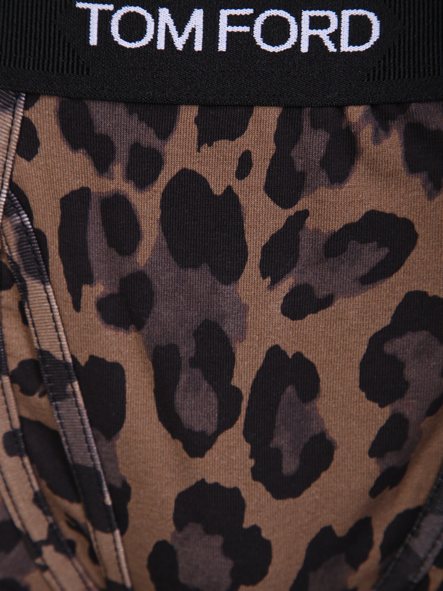 Leopard print light brown boxer shorts by Tom Ford; made of cotton, they feature a bold and alternative print