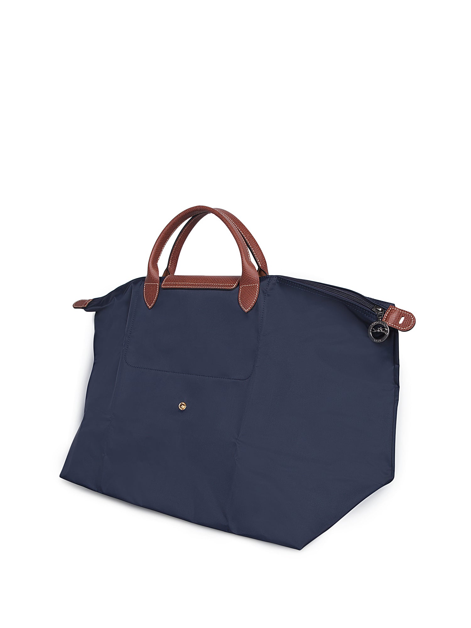 Crafted in durable fabric, leather details, top handles, front applied pocket.