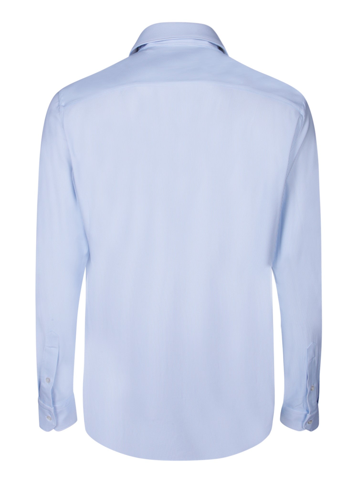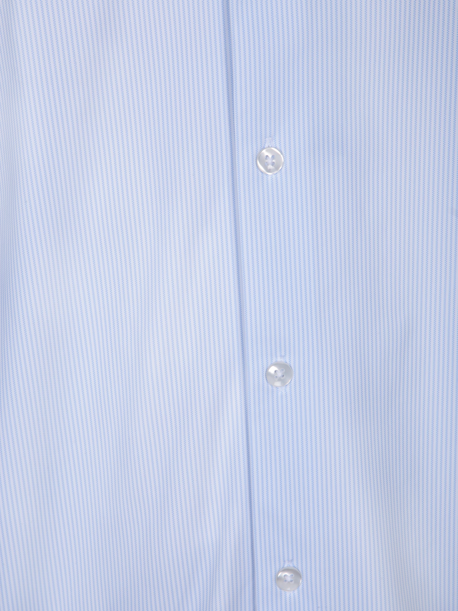 Long sleeve shirt. French collar. Thin vertical stripes. Button-front closure.