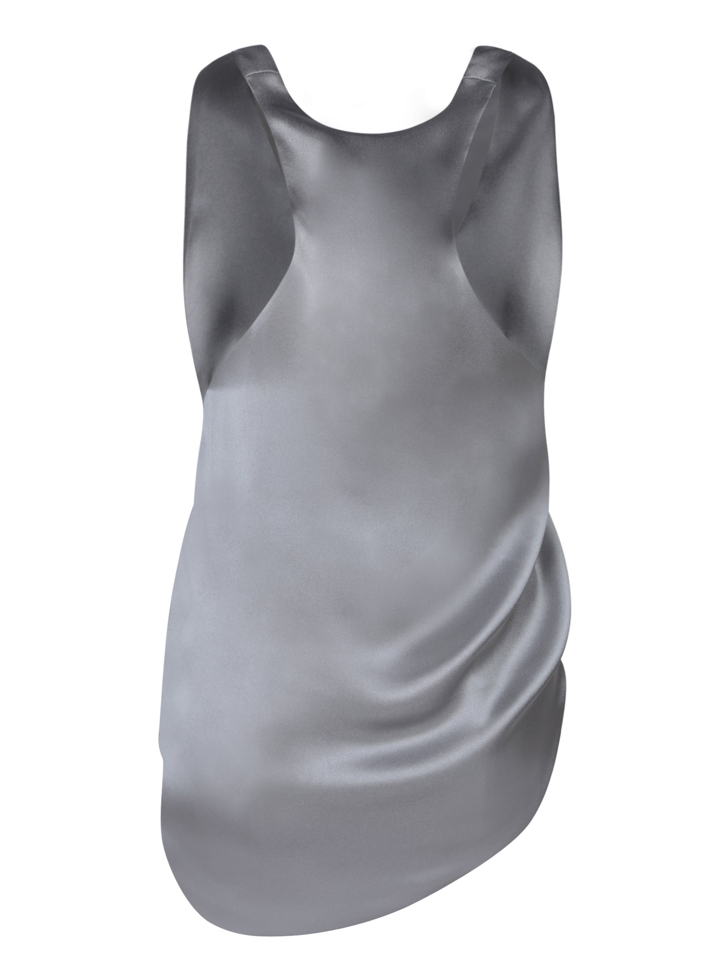 Asymmetric satin top. Deep V-neckline. Fluid cut.