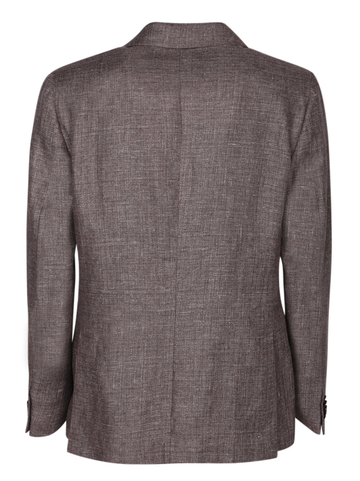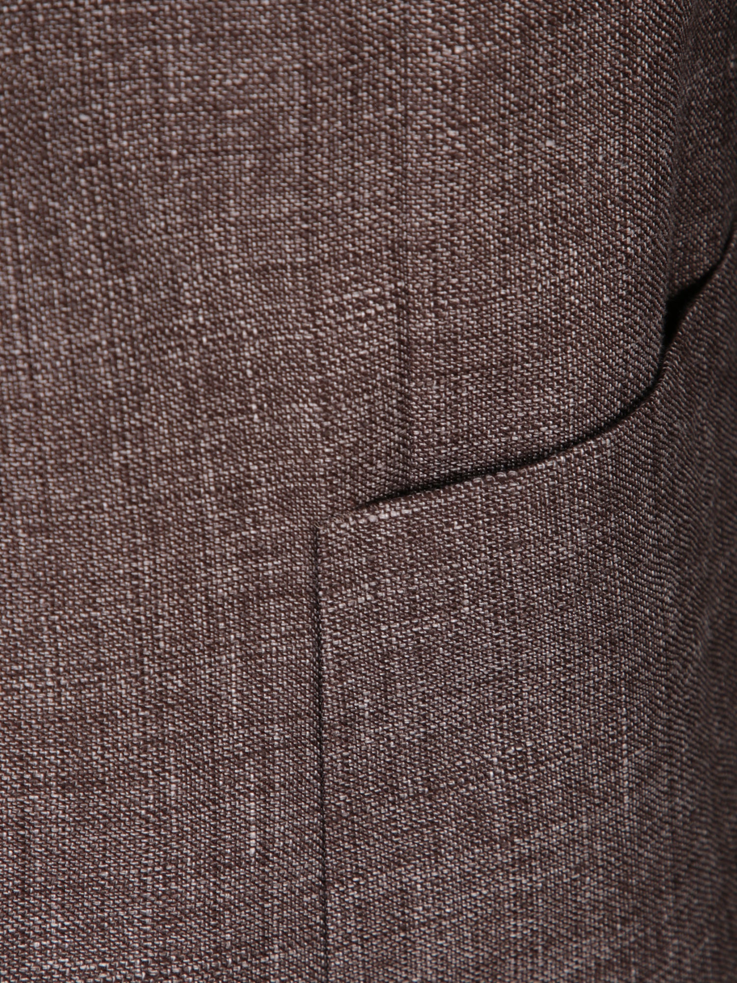 Linen-wool blend fabric. Notched lapels. Two-button front closure. Patch pockets. Light interior lining.