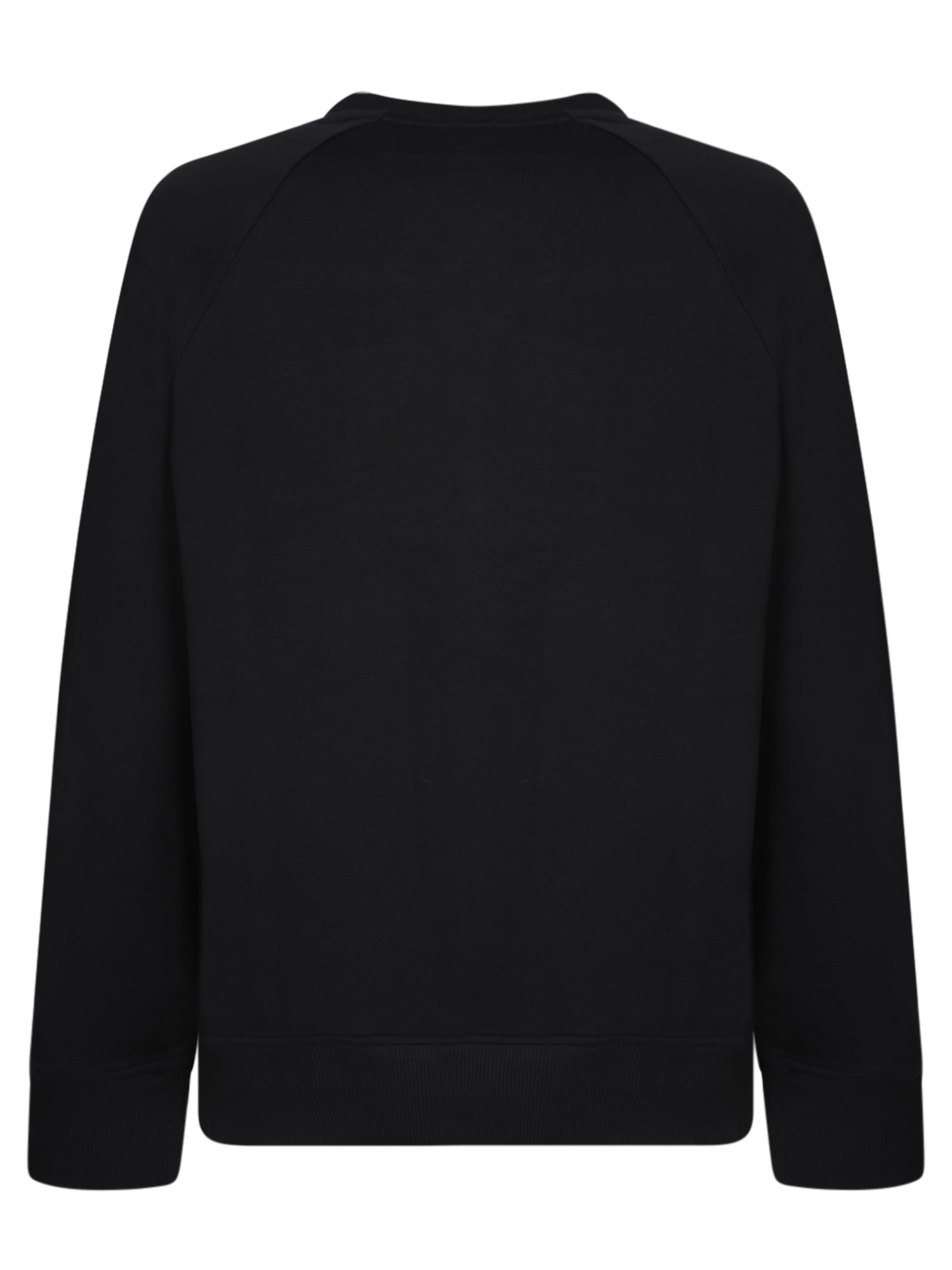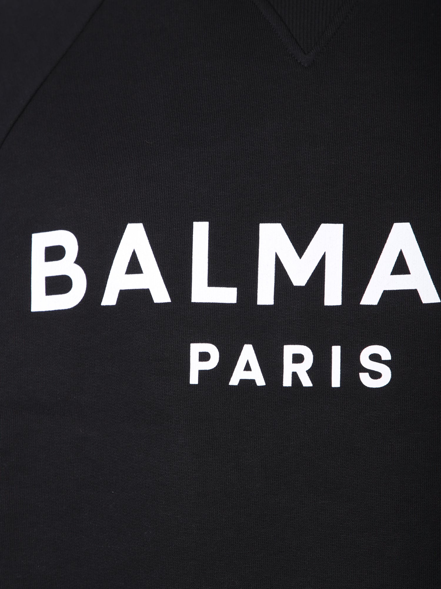 Black cotton sweatshirt with white Balmain Paris logo on the front. Crewneck and long sleeves.