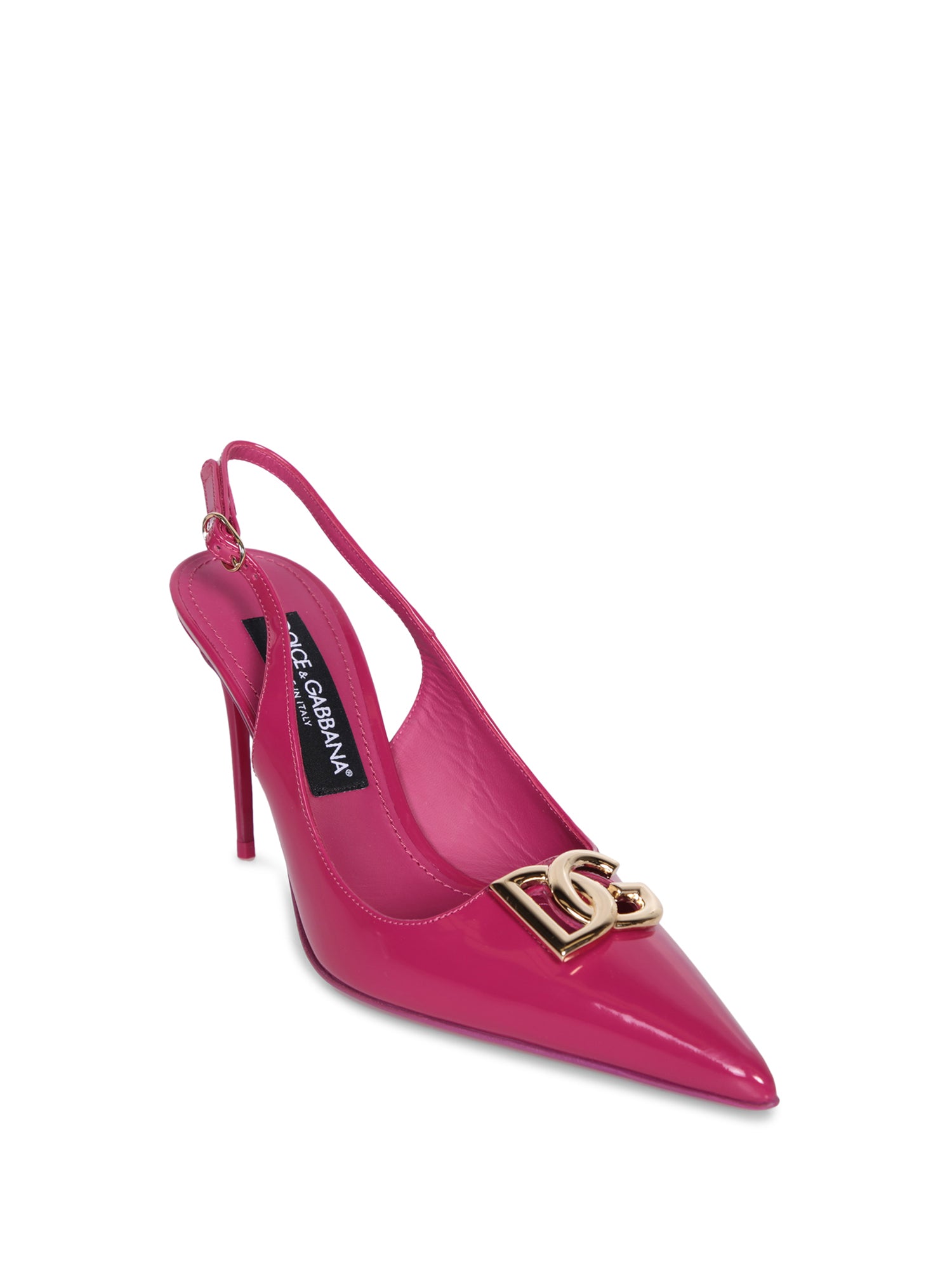 The sling back from the Lollo line, is made of shiny calfskin leather and is personalized with metal DG cut-out logo