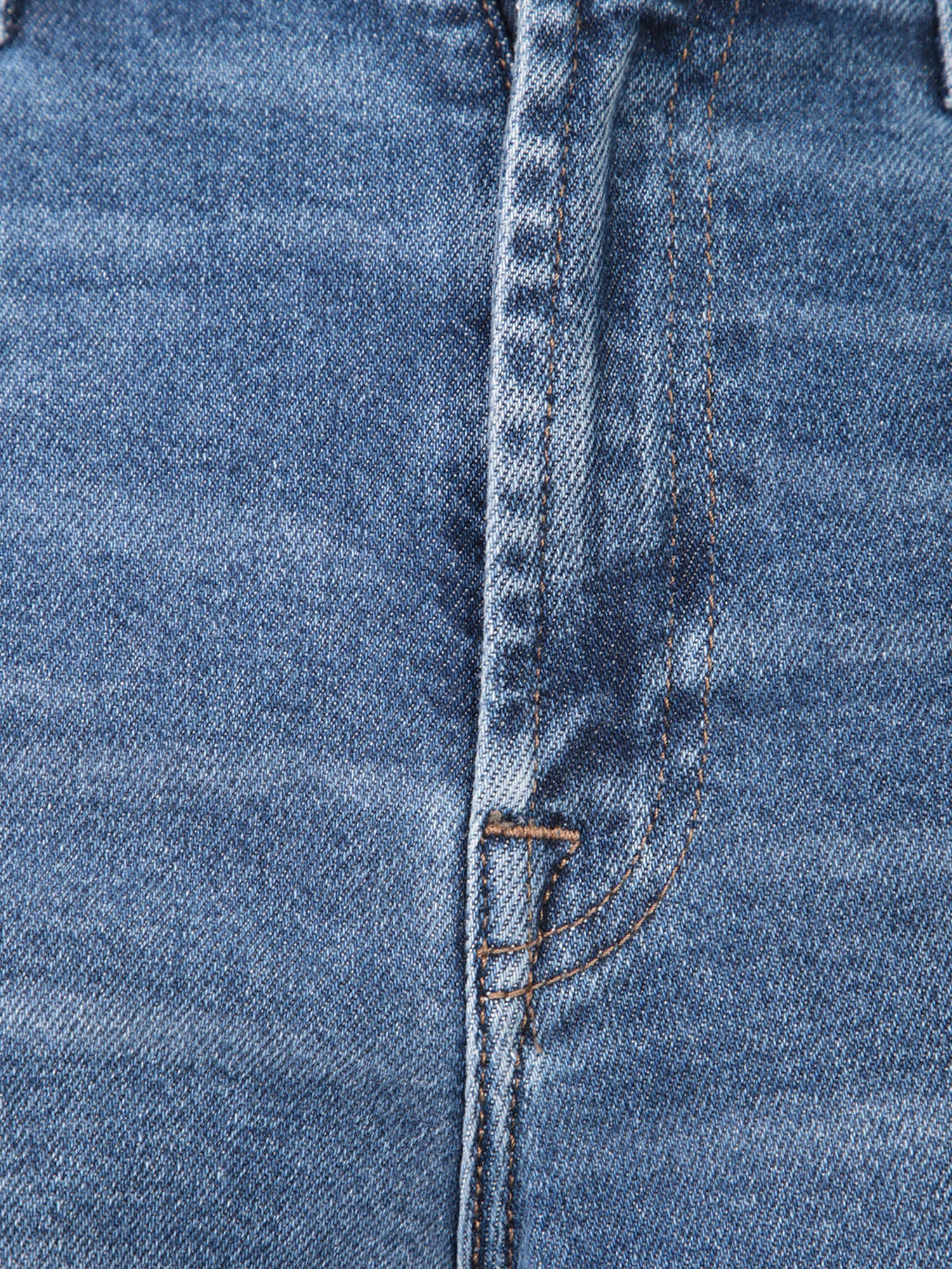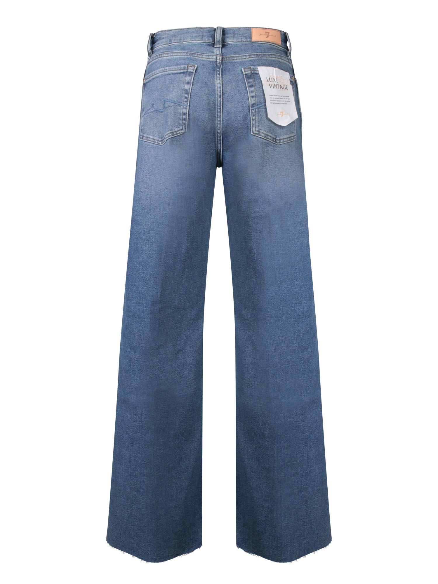 Flared jeans with frayed hem. Front zip and button closure. Cotton modal fabric.