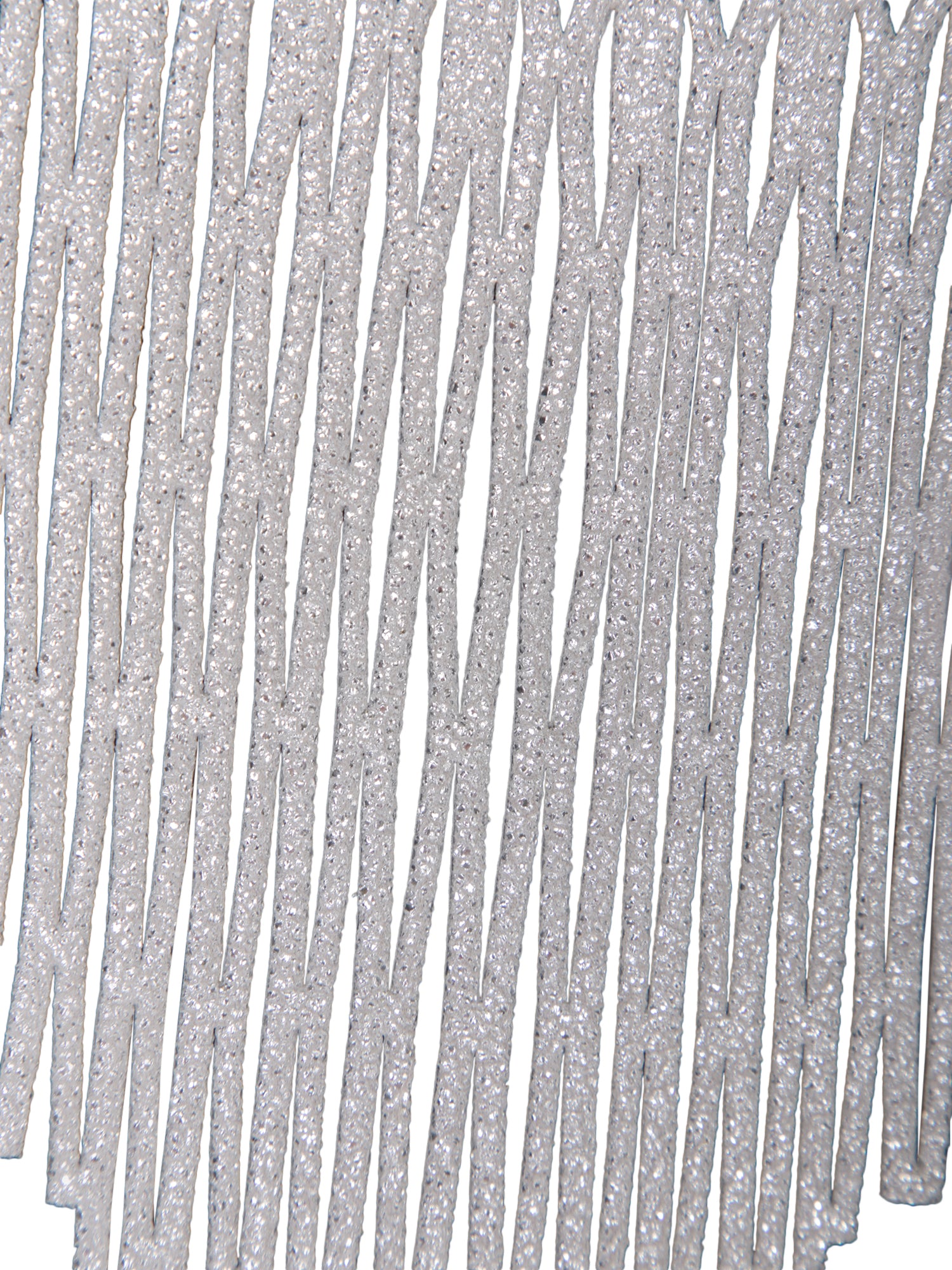 Eye-catching necklace in fabric adorned with a silver finish. Cascading design with multiple fringes.