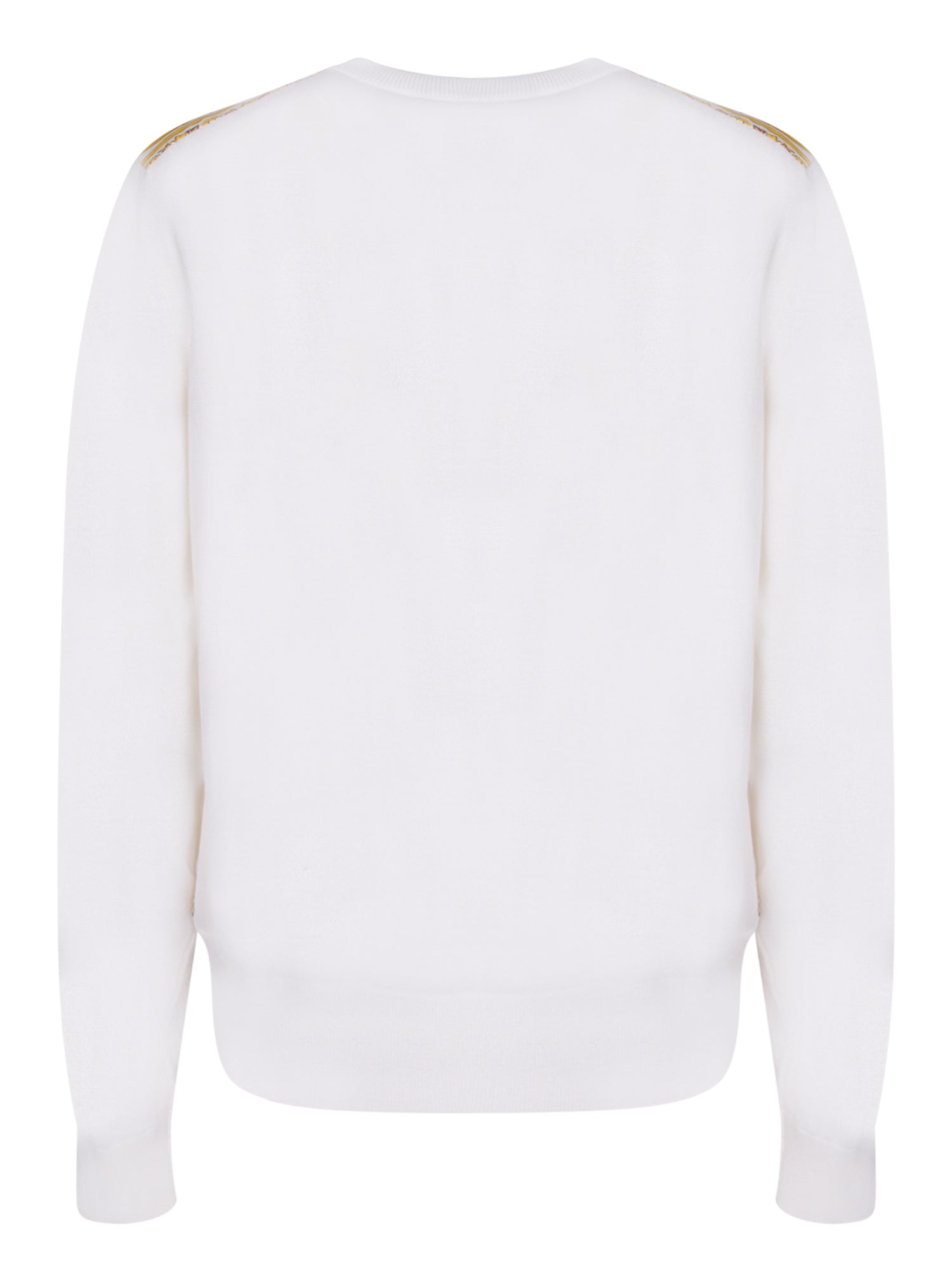 Long sleeve jacquard fabric cardigan. Ribbed knit collar, cuffs, and hem. Front button closure.