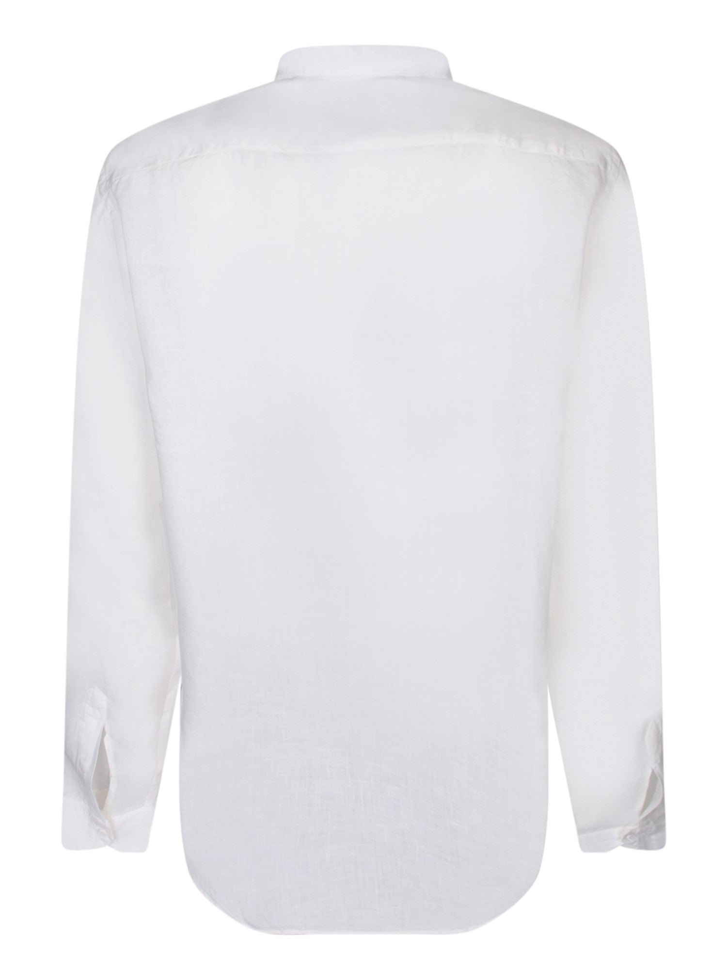 Mandarin collar. Front button closure. Long sleeves.