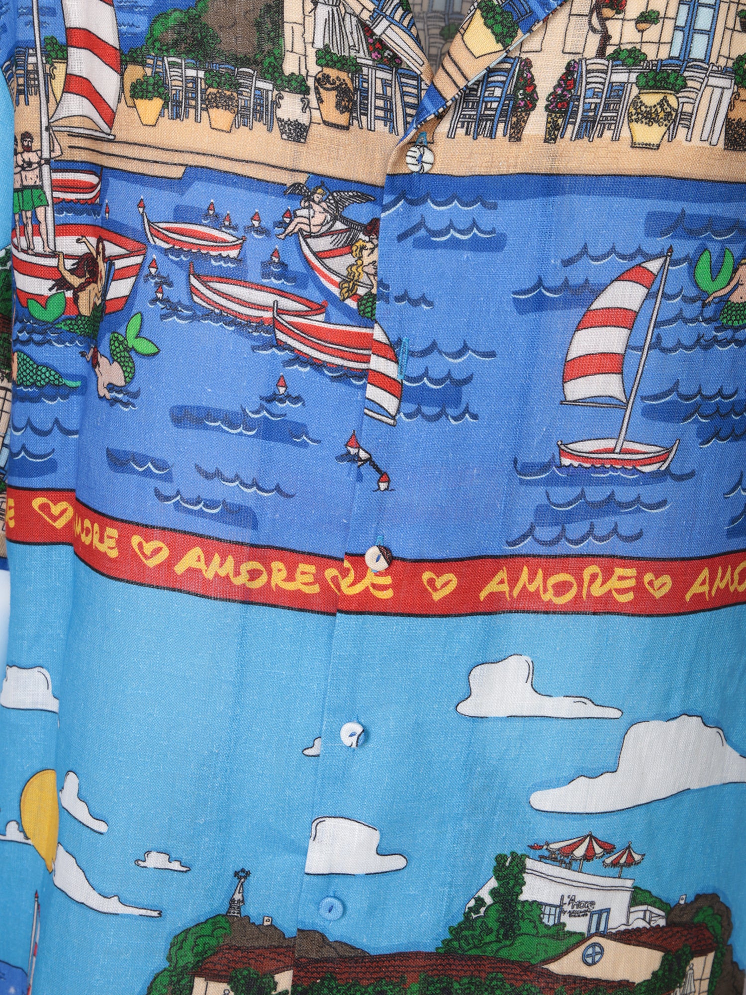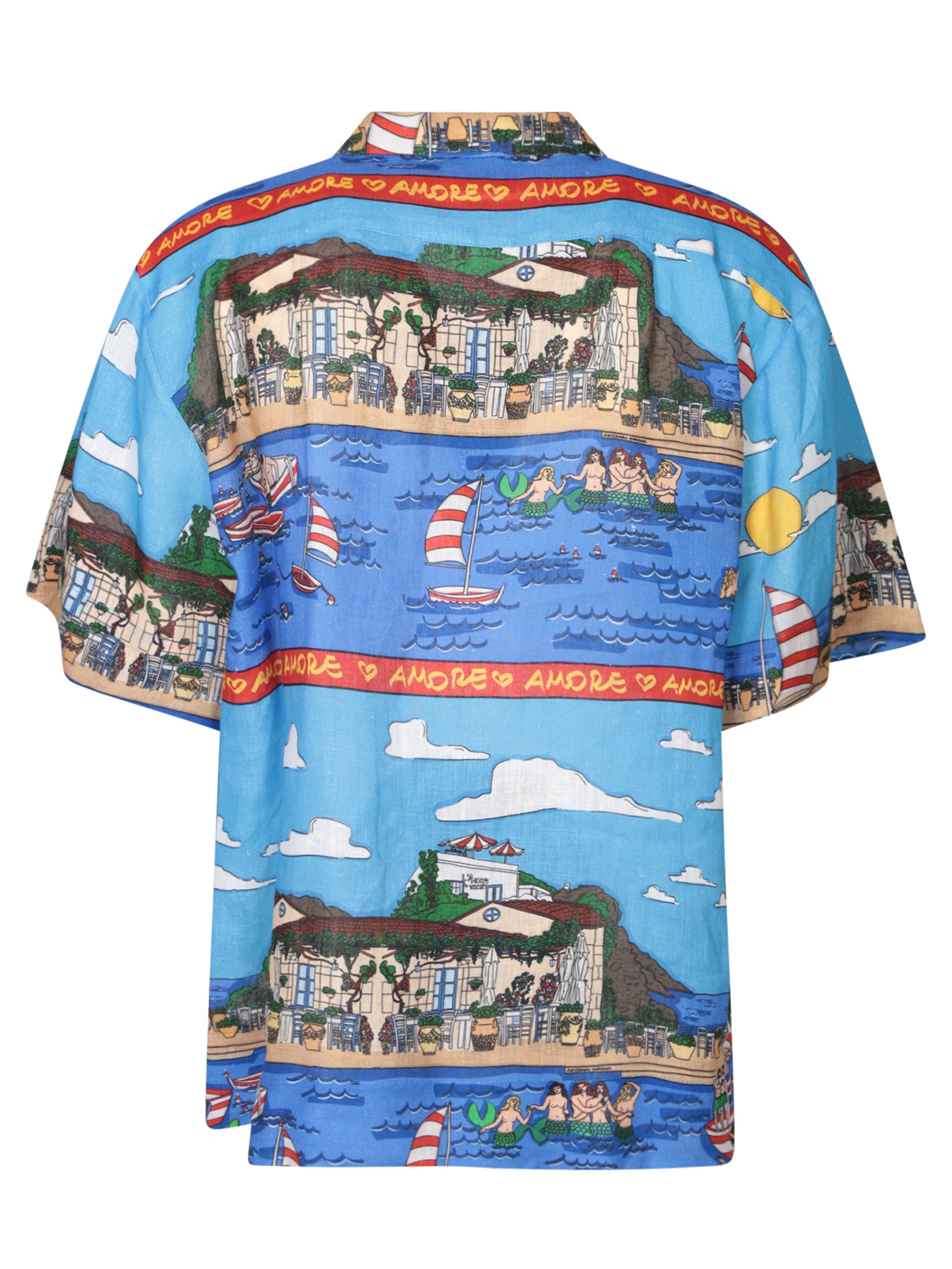 Short sleeves, Cuban collar, front button closure, linen fabric.