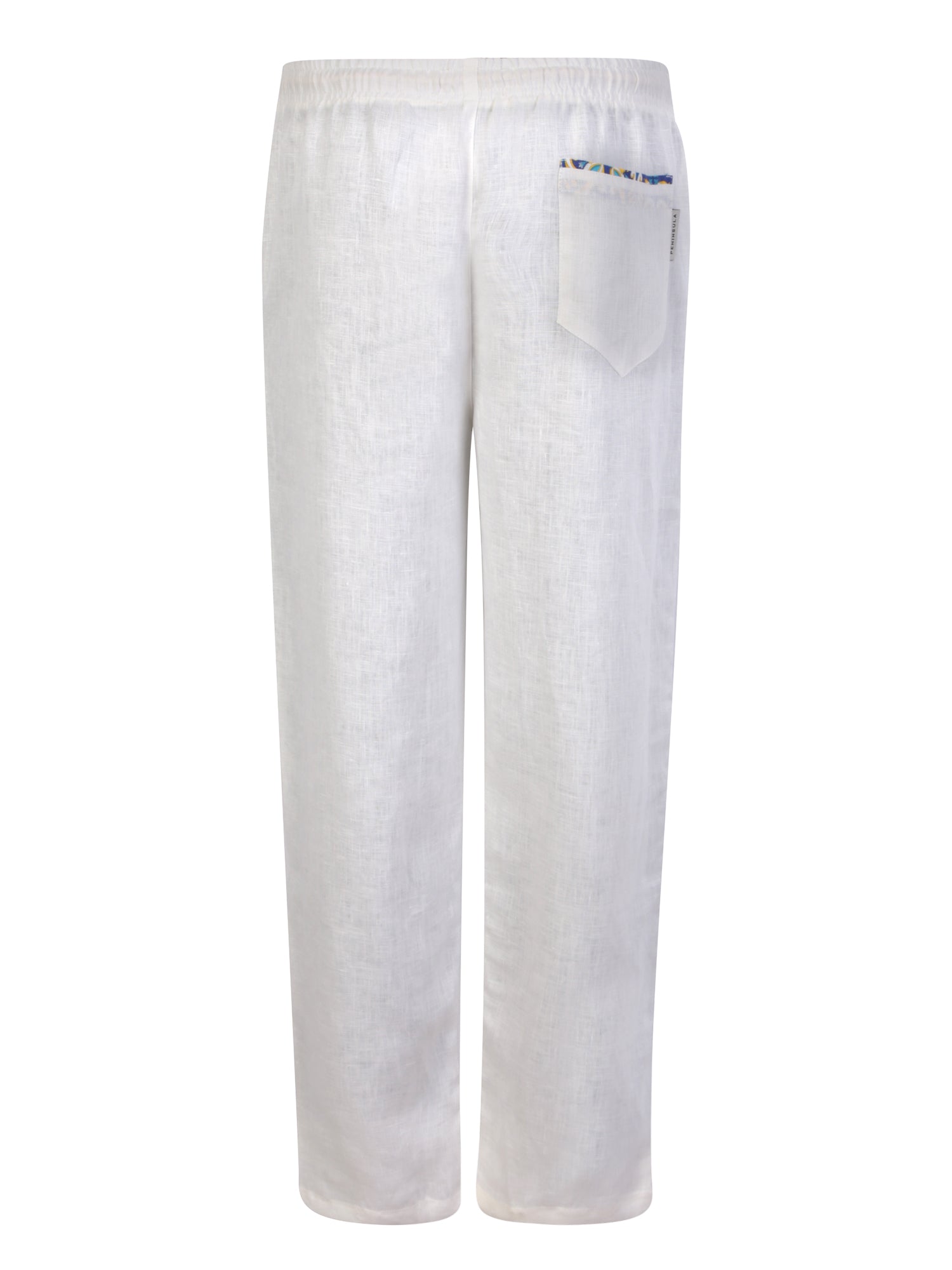 Marzamemi linen white trousers by Peninsula. A classic and refined style garment with a comfortable and versatile fit