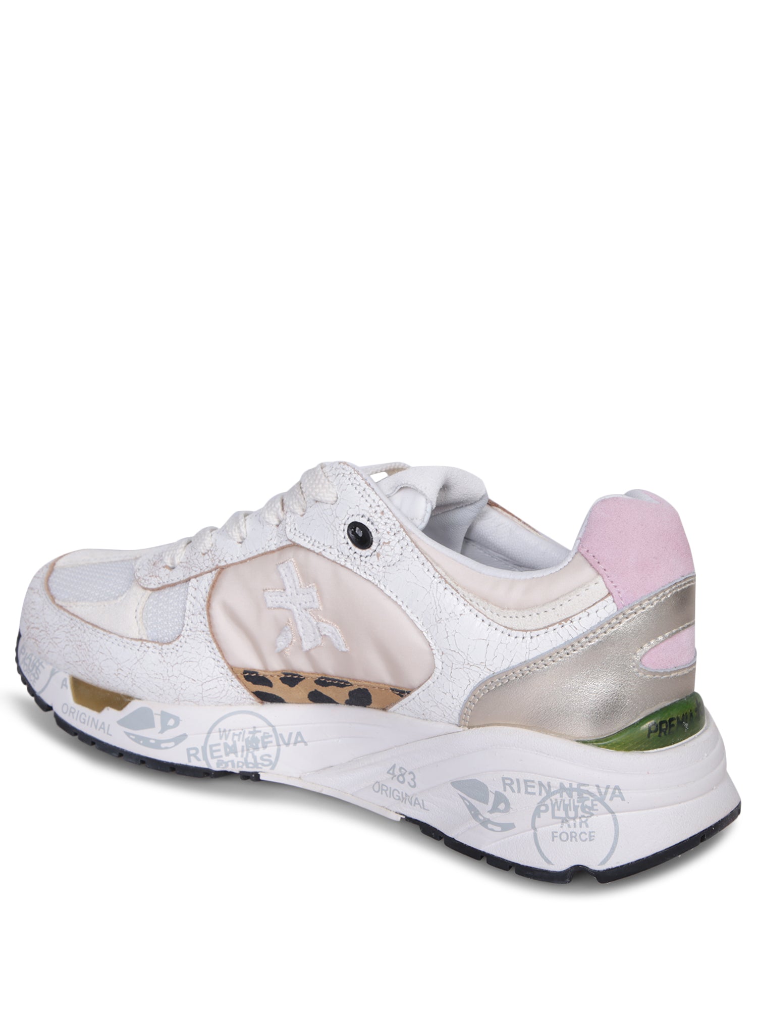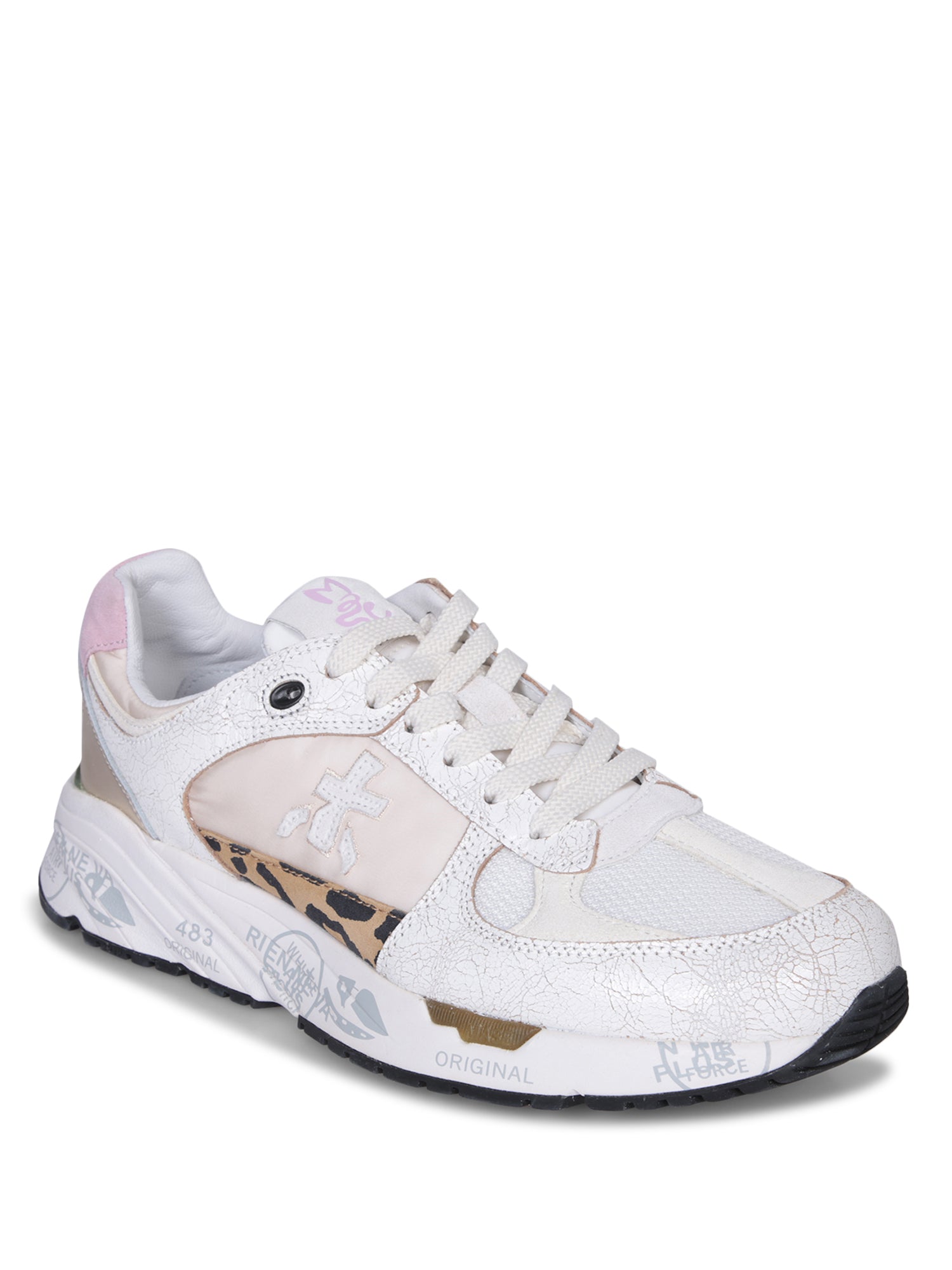 Crafted from high-quality leather with suede details. Features leopard print fabric inserts and metallic finishes.