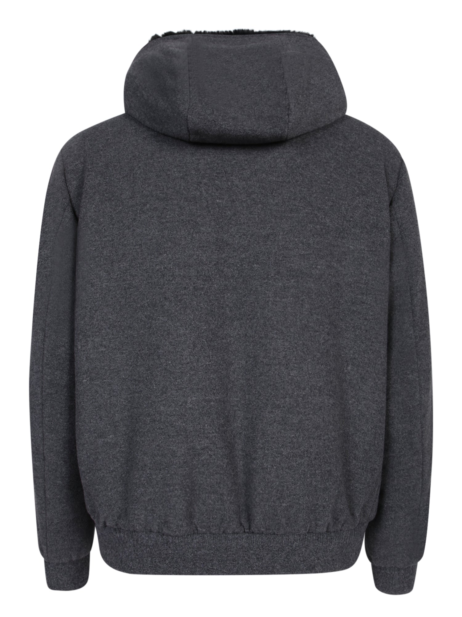 Hooded sweatshirt with front zip closure and faux fur lining.