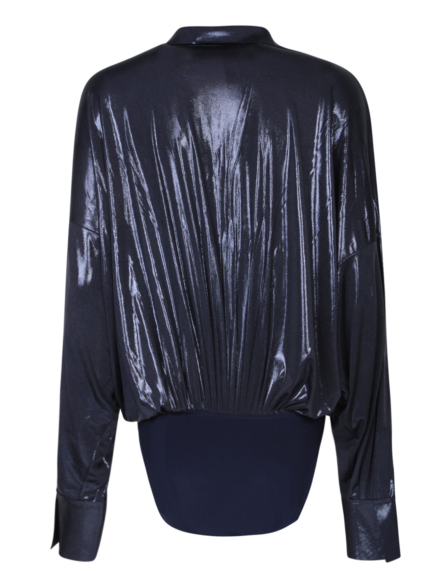 Metallic fabric shirt. Classic collar. Long sleeves with cuffs.