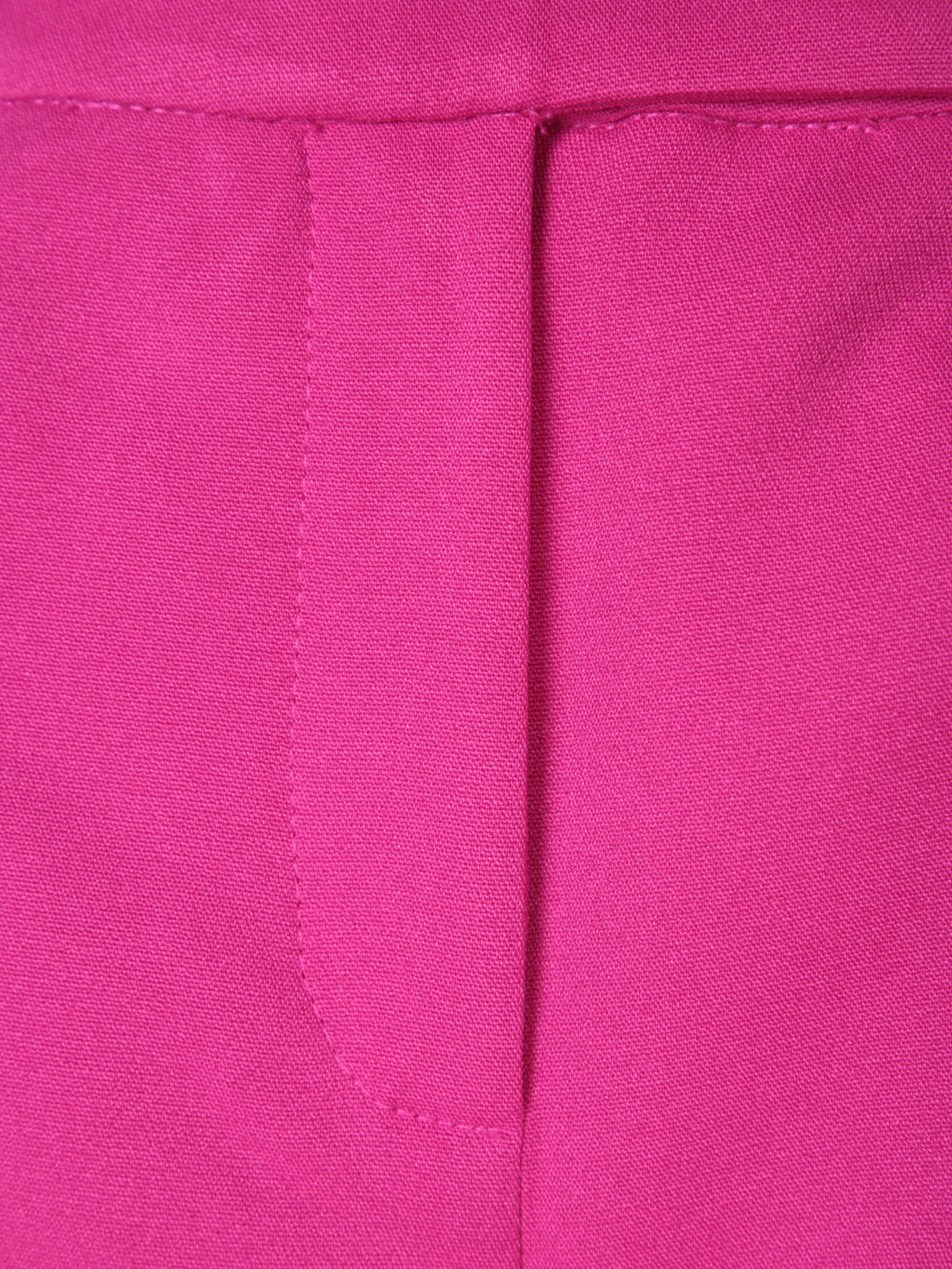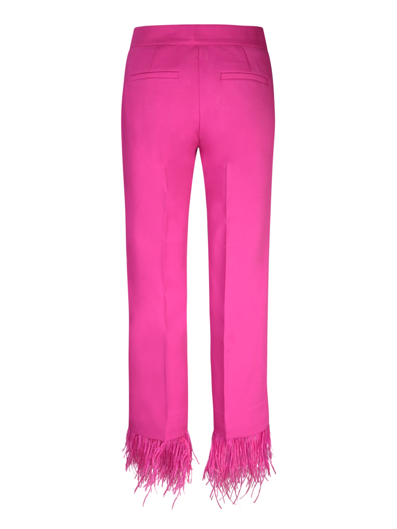 Crop flare cut. Regular waist. Concealed zip fastening. Feather trim finishings at hem.