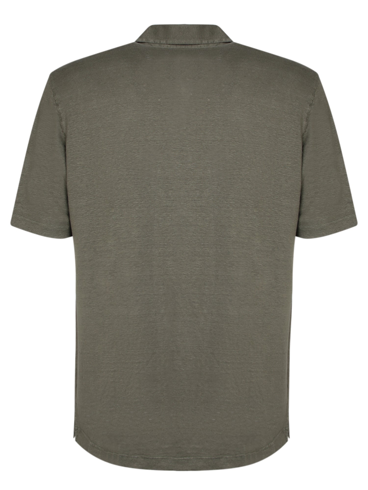 Short-sleeve linen polo. Classic collar with V-opening. Lightweight fabric with a vintage finish.