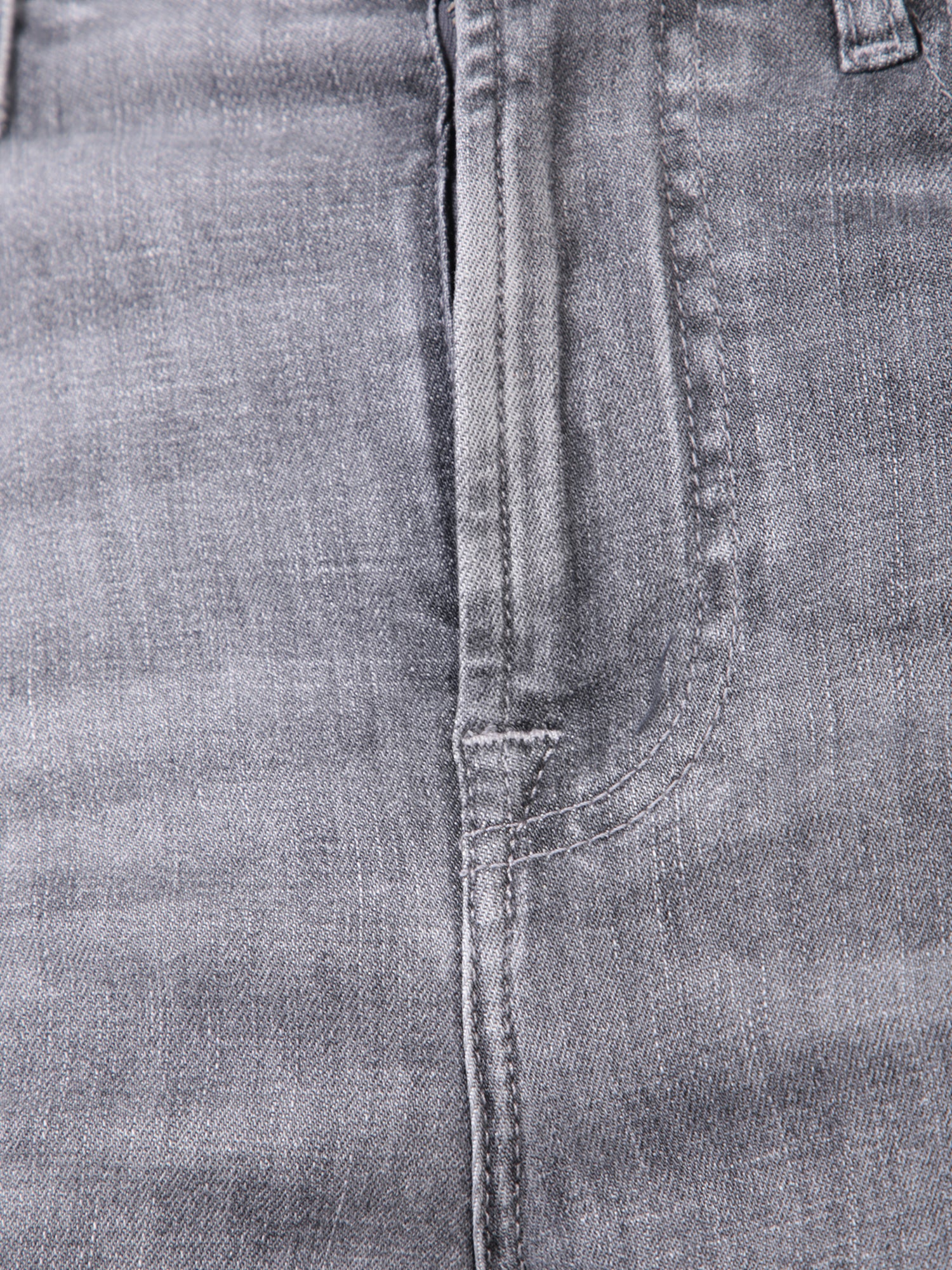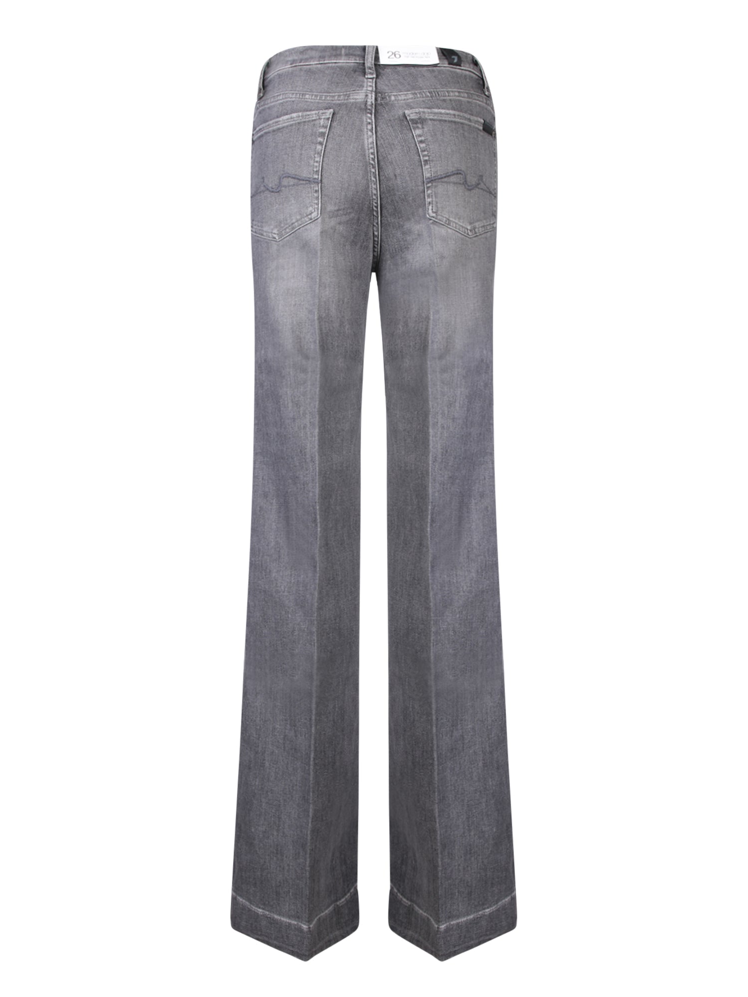 Flared cut. Washed denim fabric. Mid-rise waist.