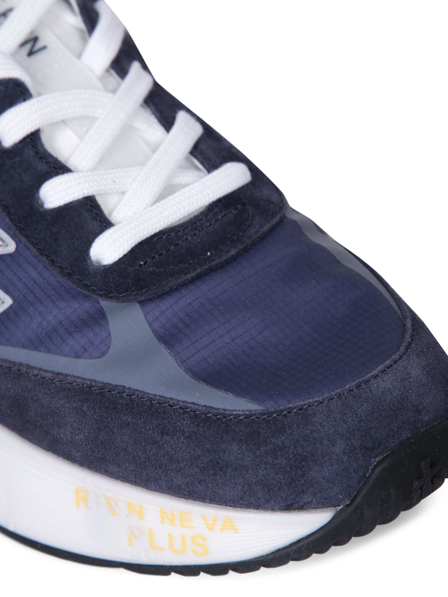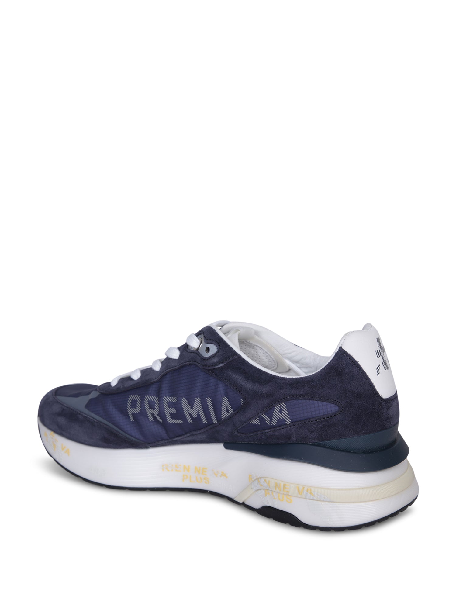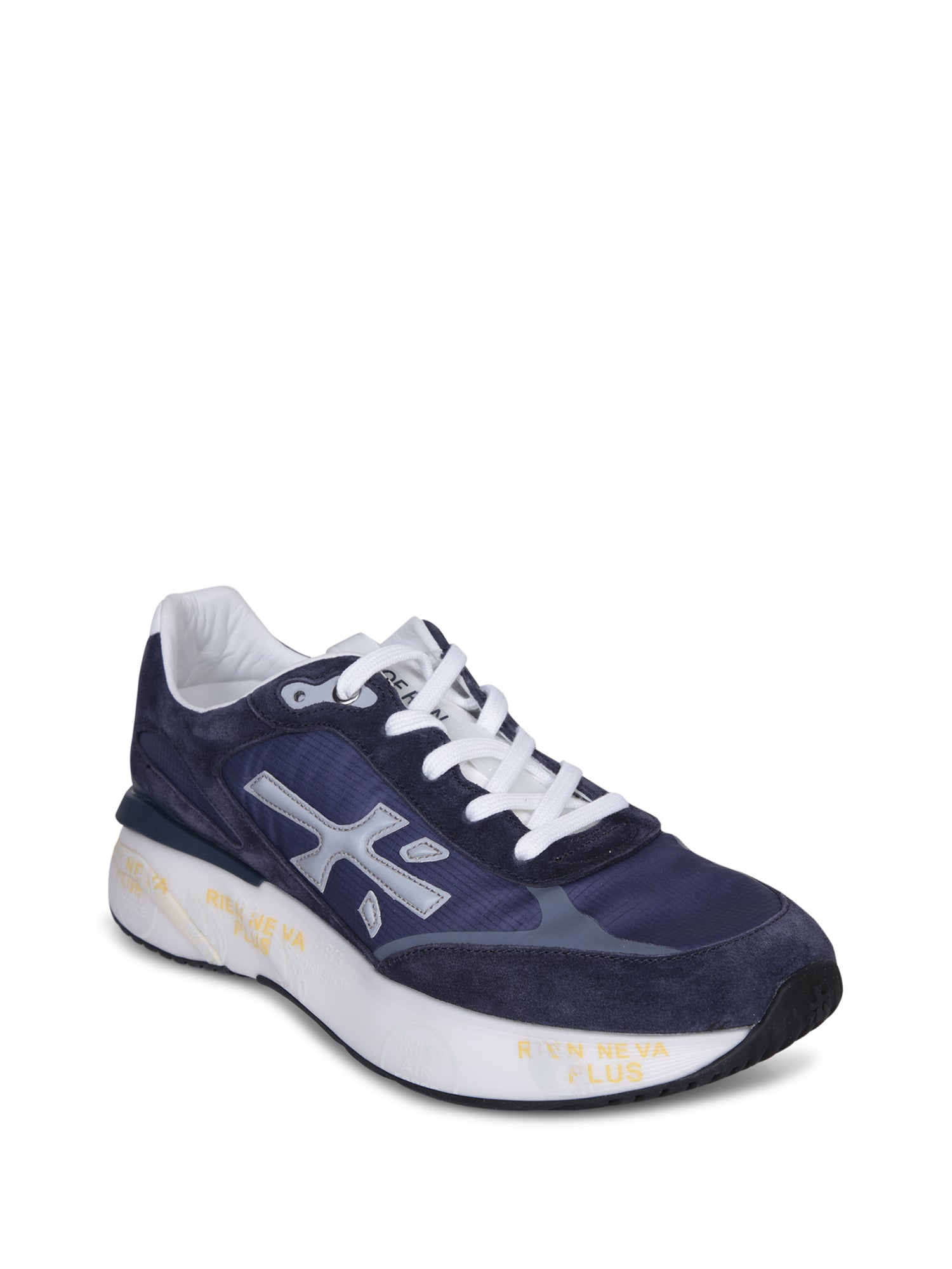 Low-top sneakers in fabric and suede. Branded motif on the sole, multilayer design.