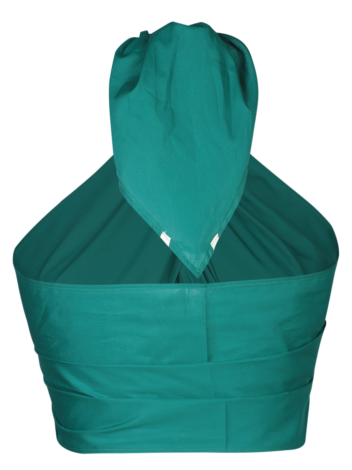 Sleeveless top crafted from soft cotton. Features sophisticated draping on the front.