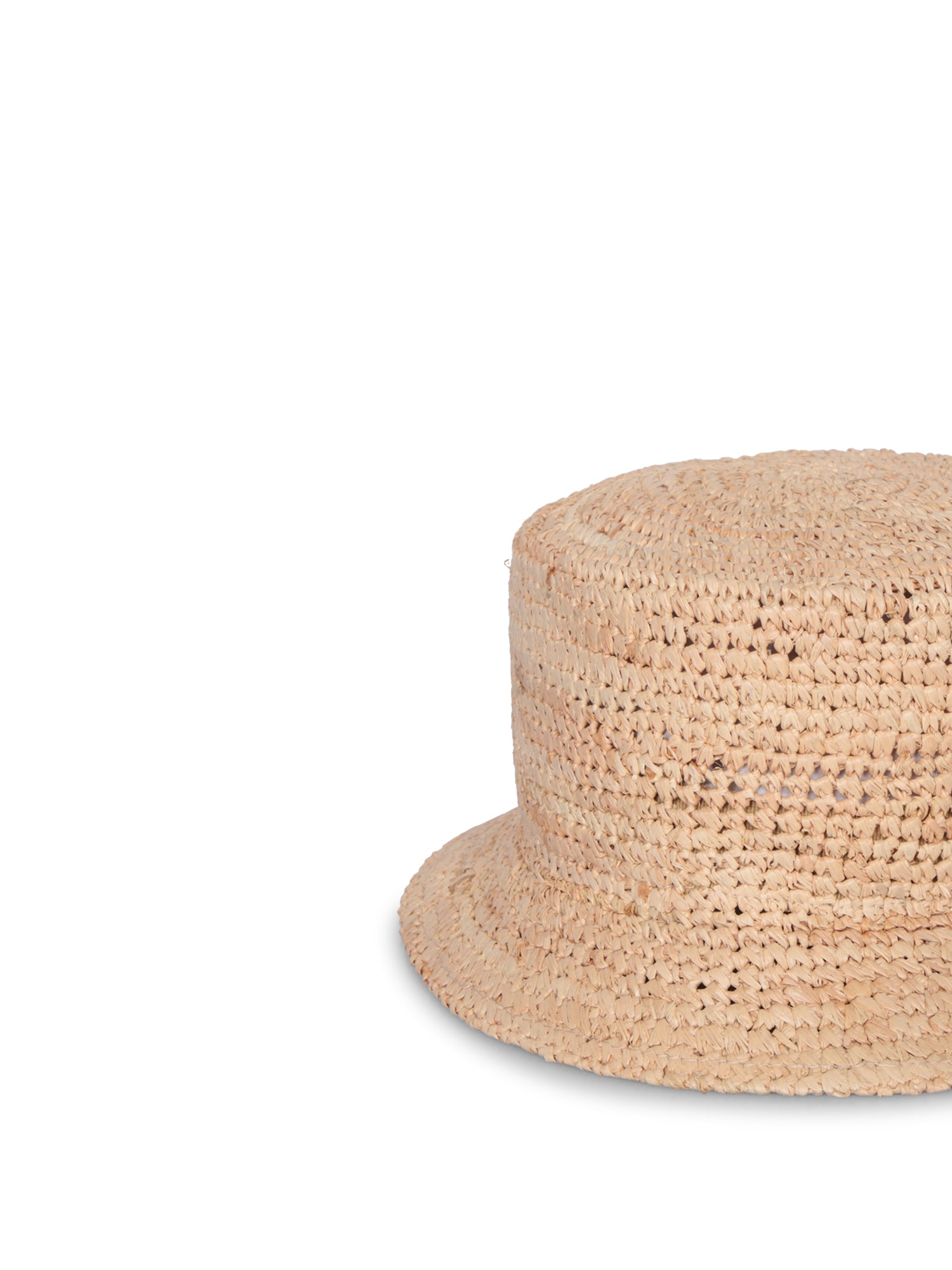 Hat made of natural woven raffia. Jacquemus logo embroidered in black.