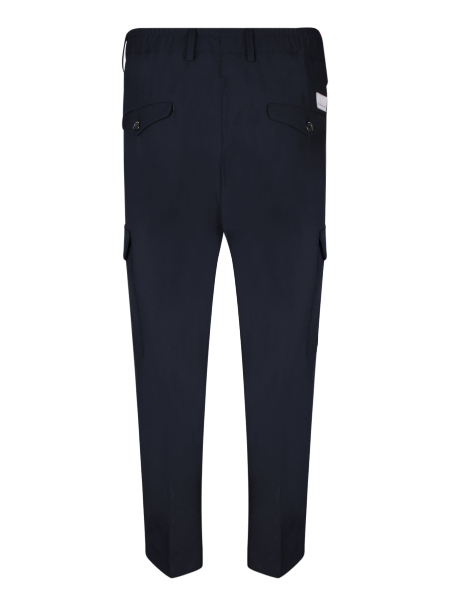 Night blue cargo Trousers with a durable and lightweight fabric. Front closure with button and zipper.