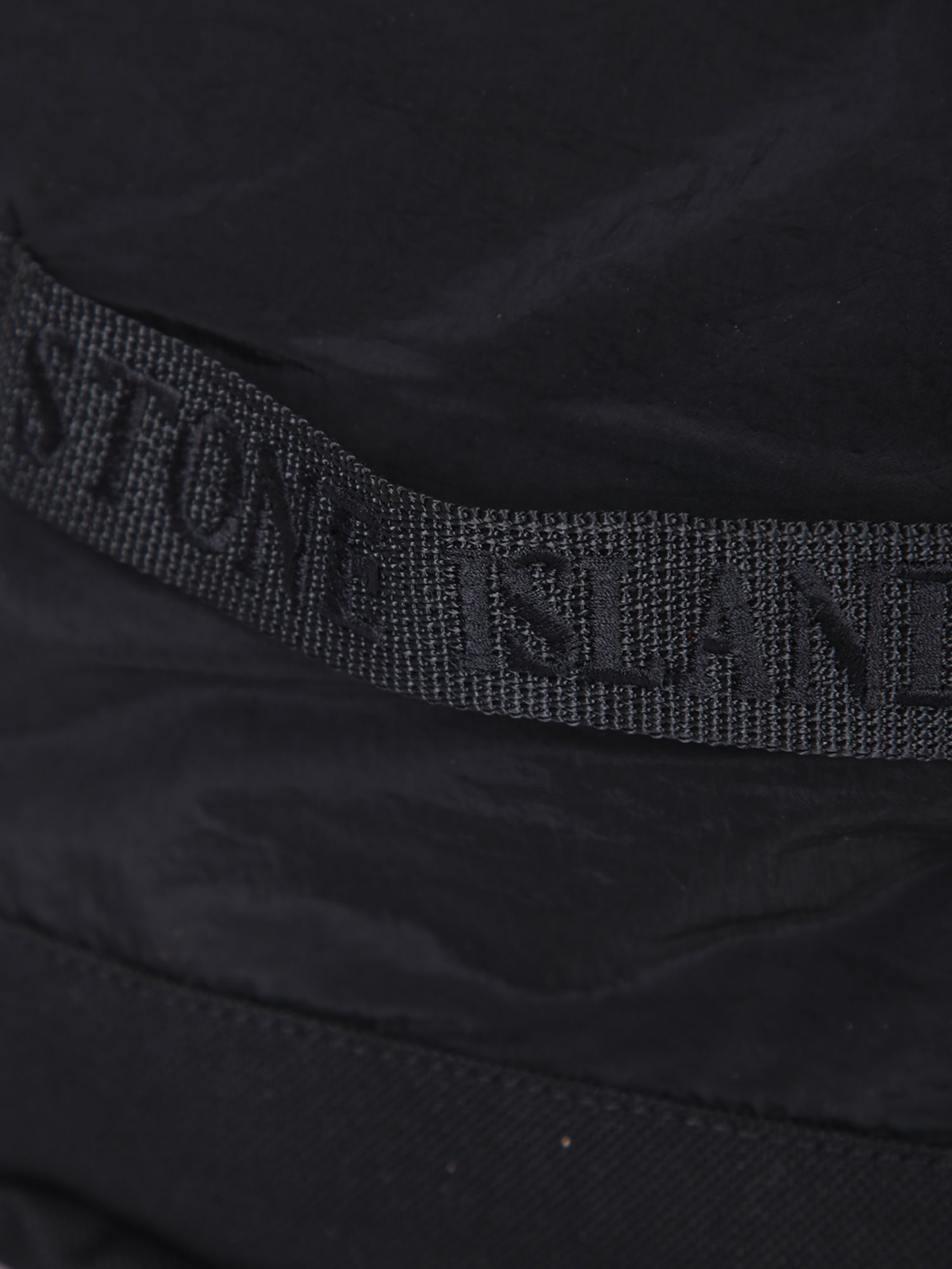 Durable technical fabric waist bag. Brand logo on the front panel. Adjustable belt with buckle.