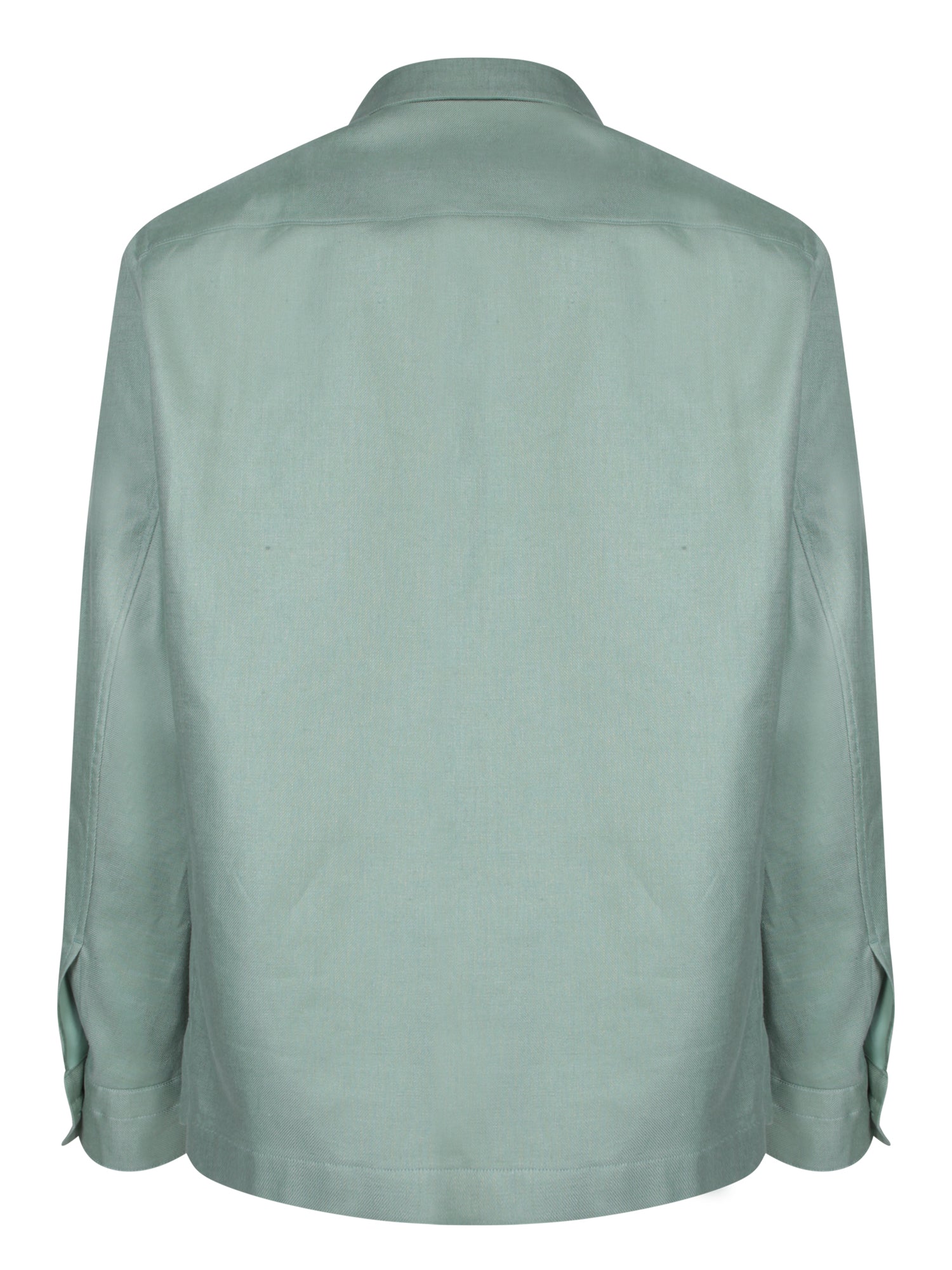 Linen overshirt featuring a classic collar, button front fastening, two chest pockets with flap, and long sleeves with buttoned cuffs.