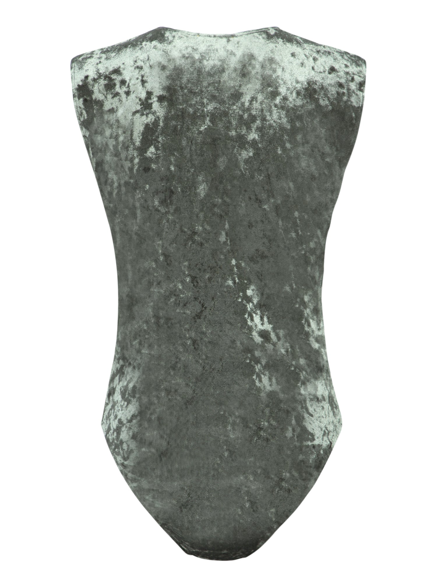 Deep V-neckline. Fitted cut. Iridescent velvet fabric.