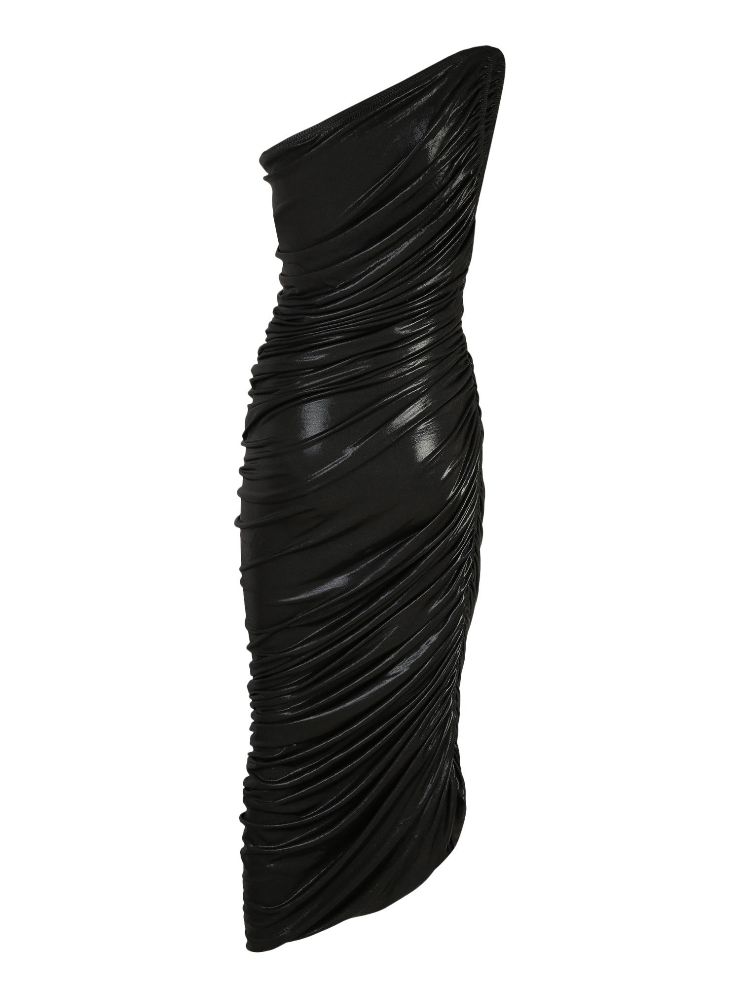 One-shoulder dress with ruched by Norma Kamali. This garment boasts an asymmetrical design, ideal for more formal occasions