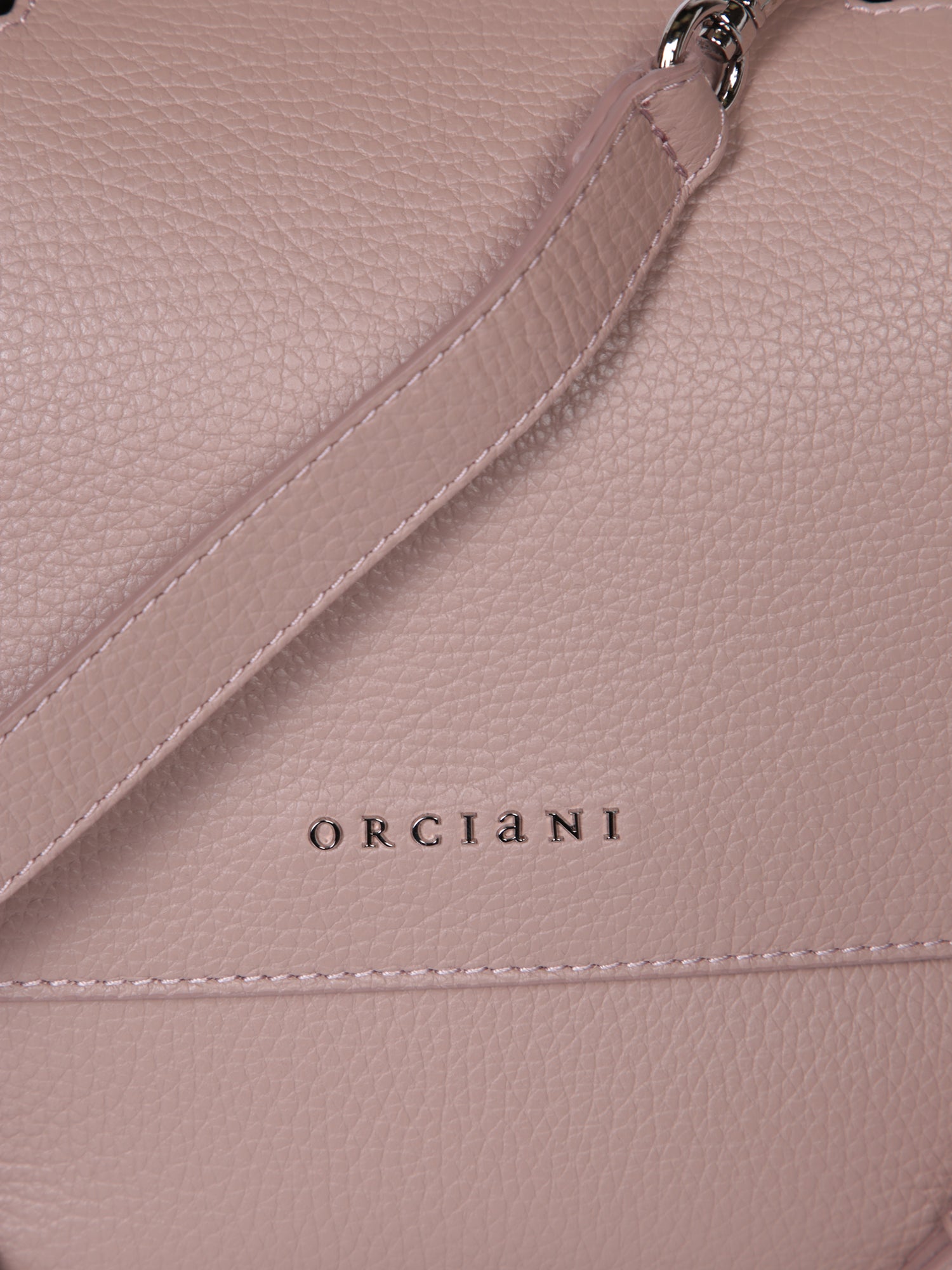 This elegant Orciani bag in a soft pink hue blends functionality with sophisticated style. Features a versatile strap and premium finishes.
