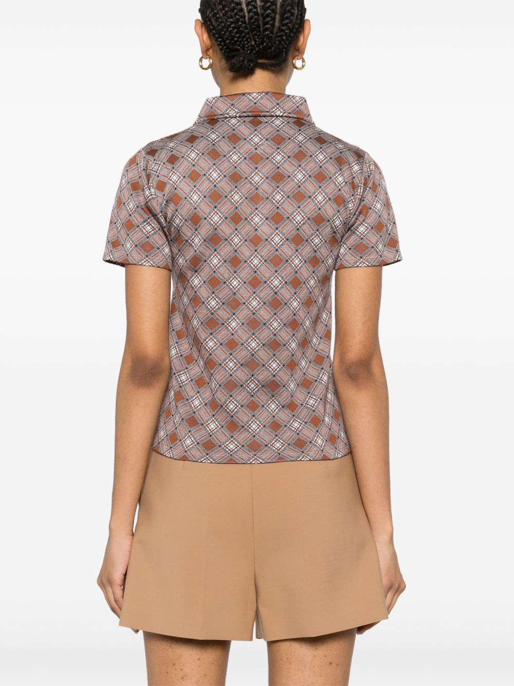 Cenere GB chose this item for its high stylistic content and eco-sustainability. Miu Miu Silk polo Features light brown short zip front closure polo-style collar short sleeves logo application on the chest | Miu Miu Silk polo Abb.to donna IT