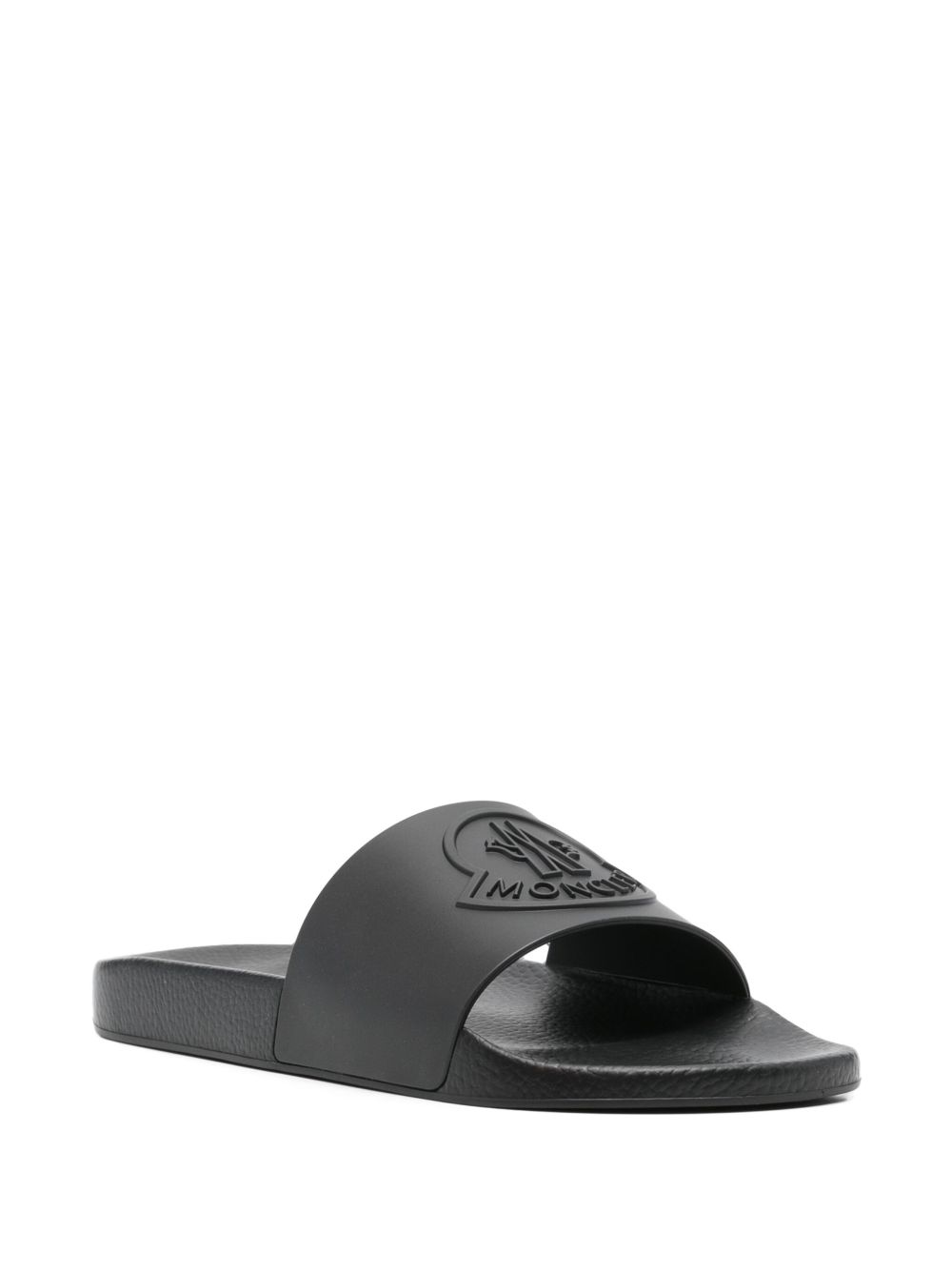 Cenere GB chose this piece for its high stylistic content and its eco-sustainability. Moncler Basile slide sandals Features black flat rubber sole embossed logo band open toe | Moncler Basile slide sandals Scarpe uomo