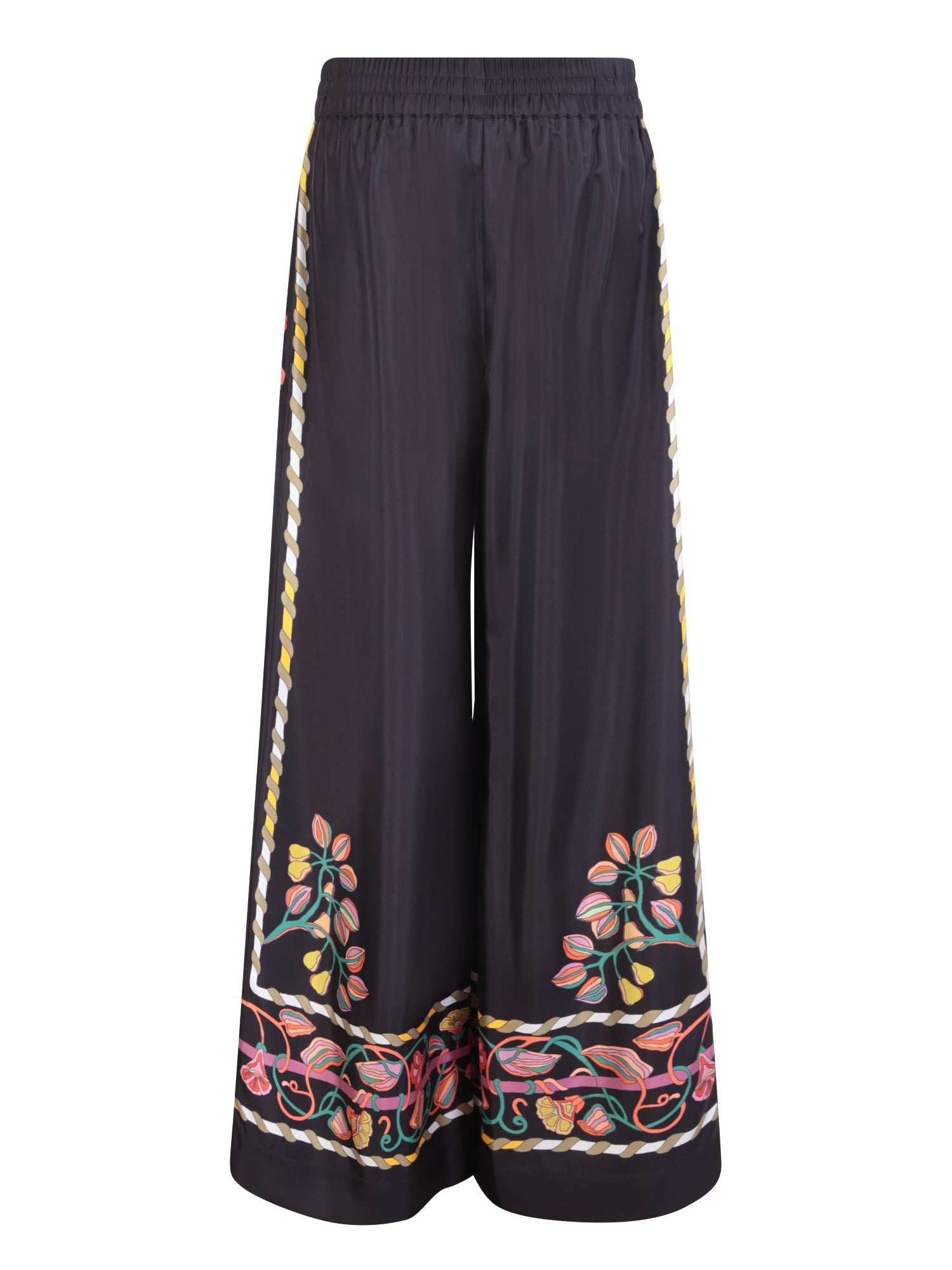 Palazzo black/ multicolor trousers by La DoubleJ. The pattern of this garment takes inspiration from the city of Naples, boasting a bold and iconic design