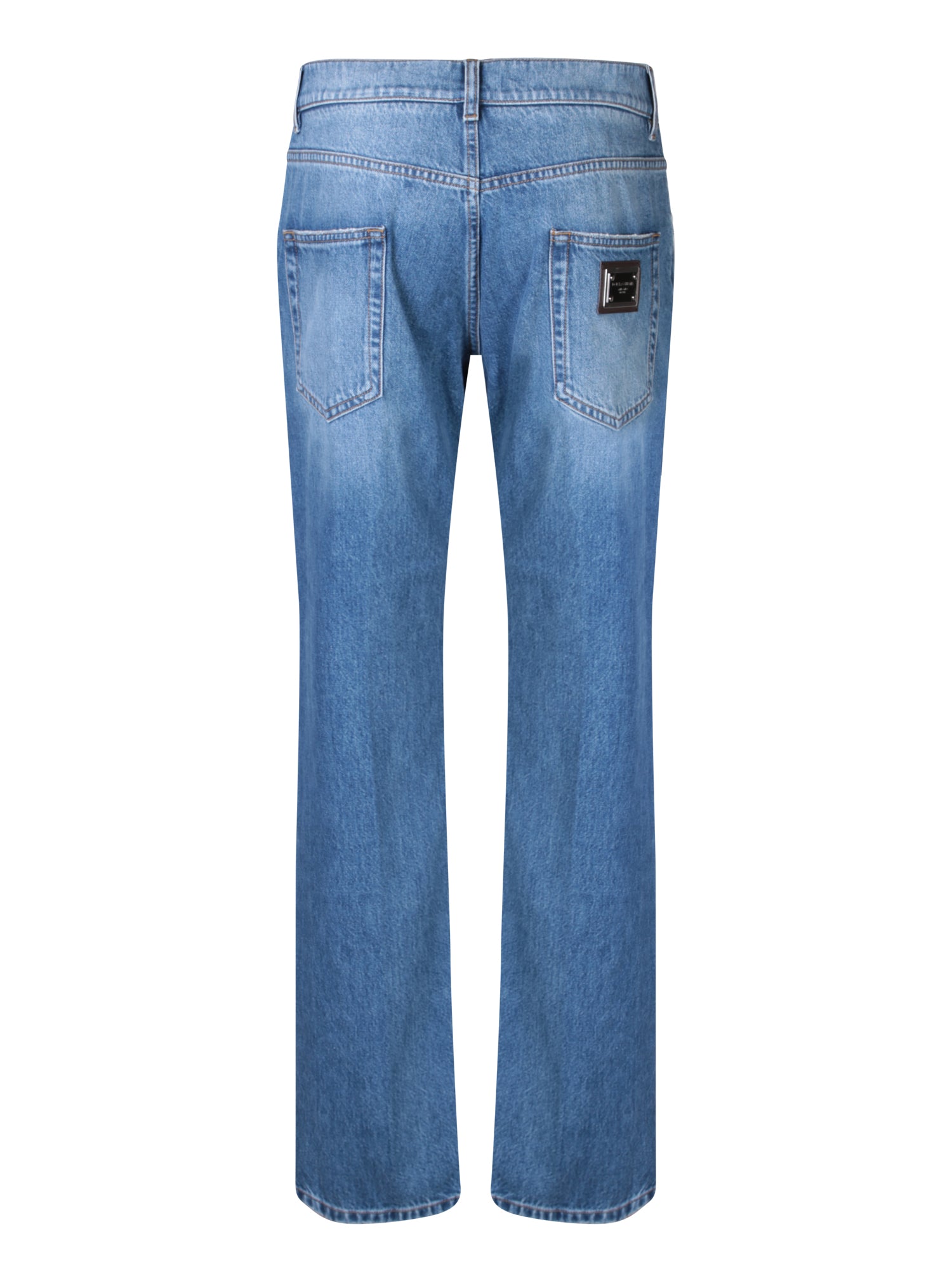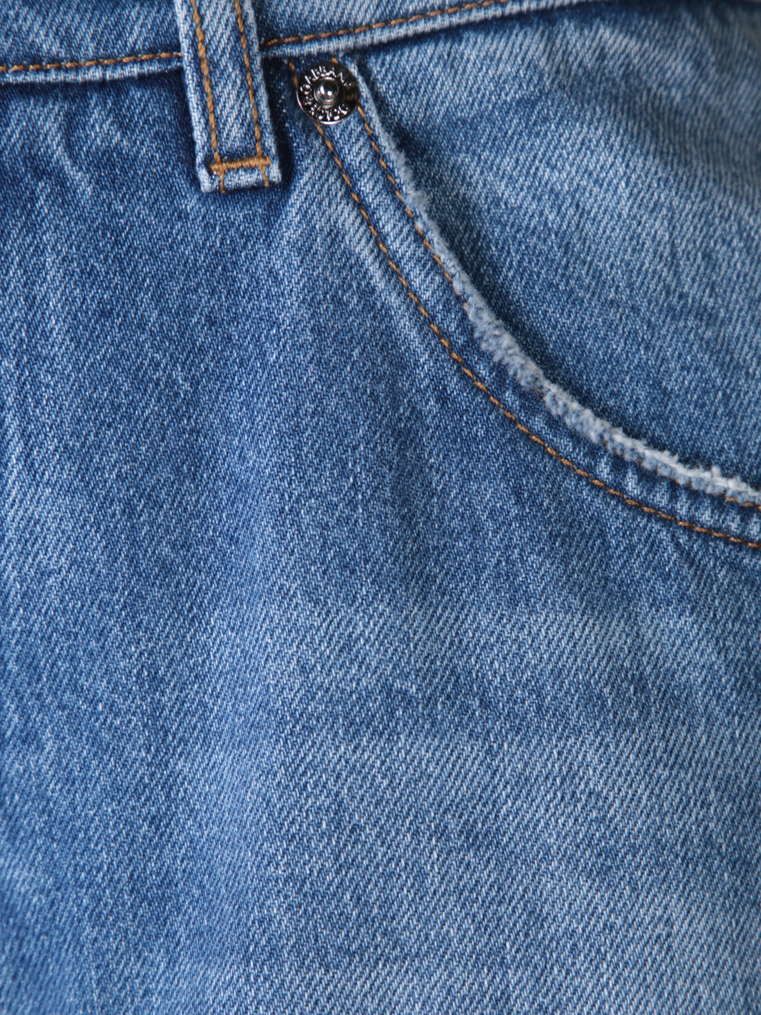 Wide-leg jeans. Regular waist with belt loops. Front button and zip closure.