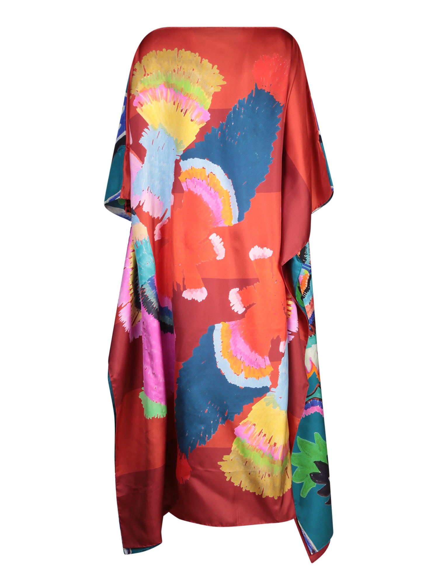 Long kaftan with wide draping. Made from smooth silk. Exclusive design featuring vibrant prints.