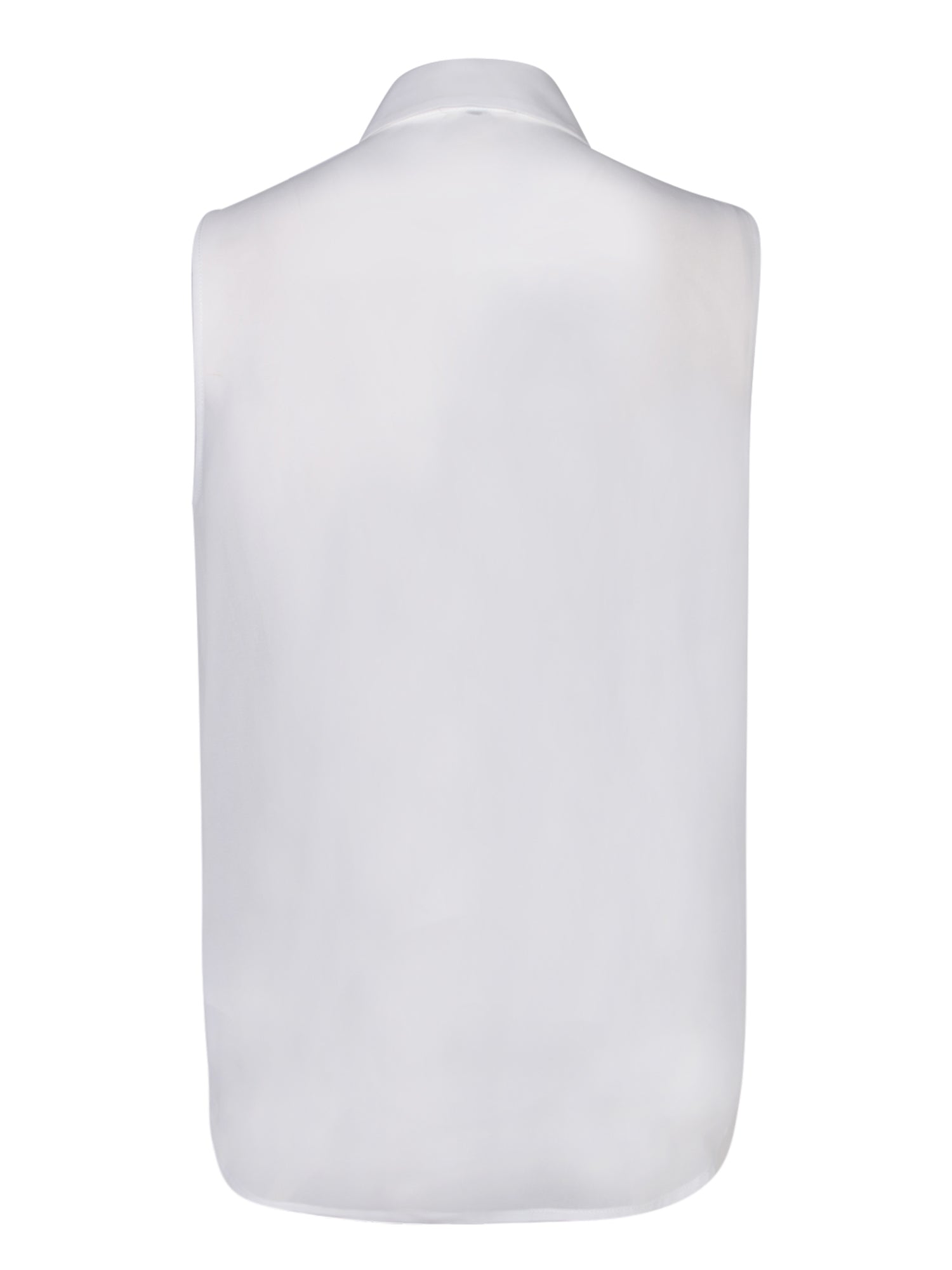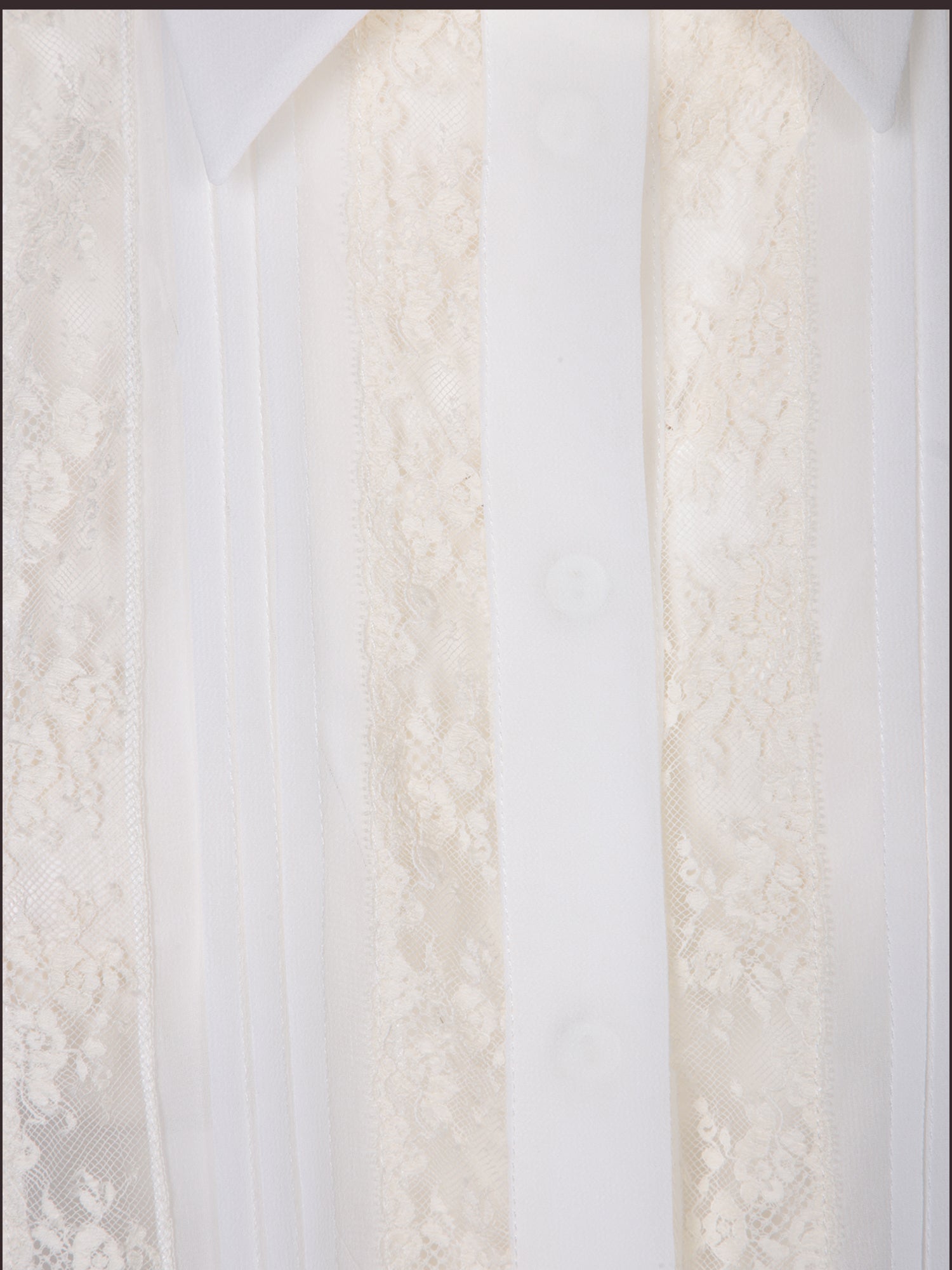 Sleeveless blouse. Transparent georgette fabric with lace details. Classic collar and button closure.