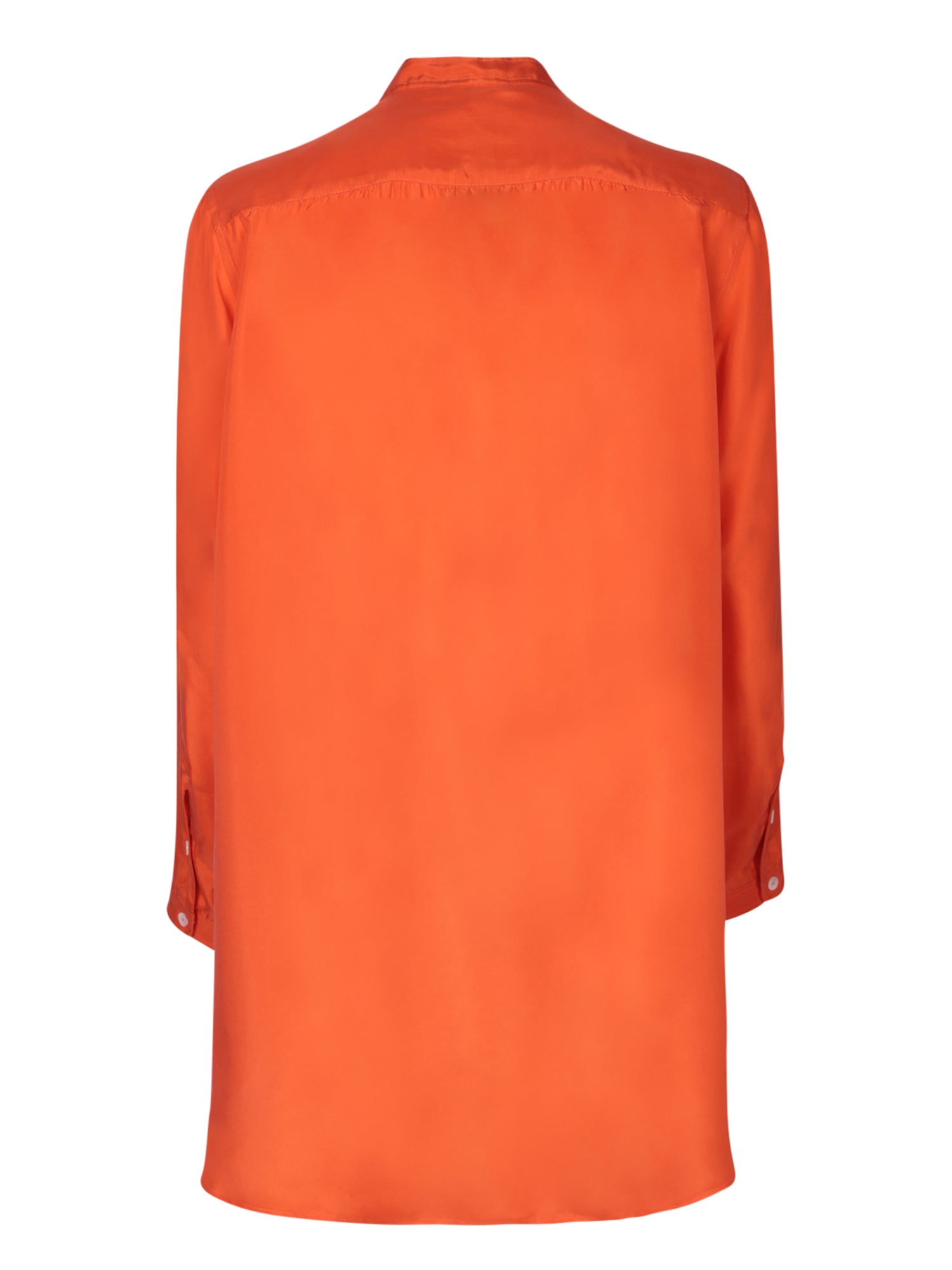 Korean-style tunic. Bright habotai fabric. Three-quarter sleeves.