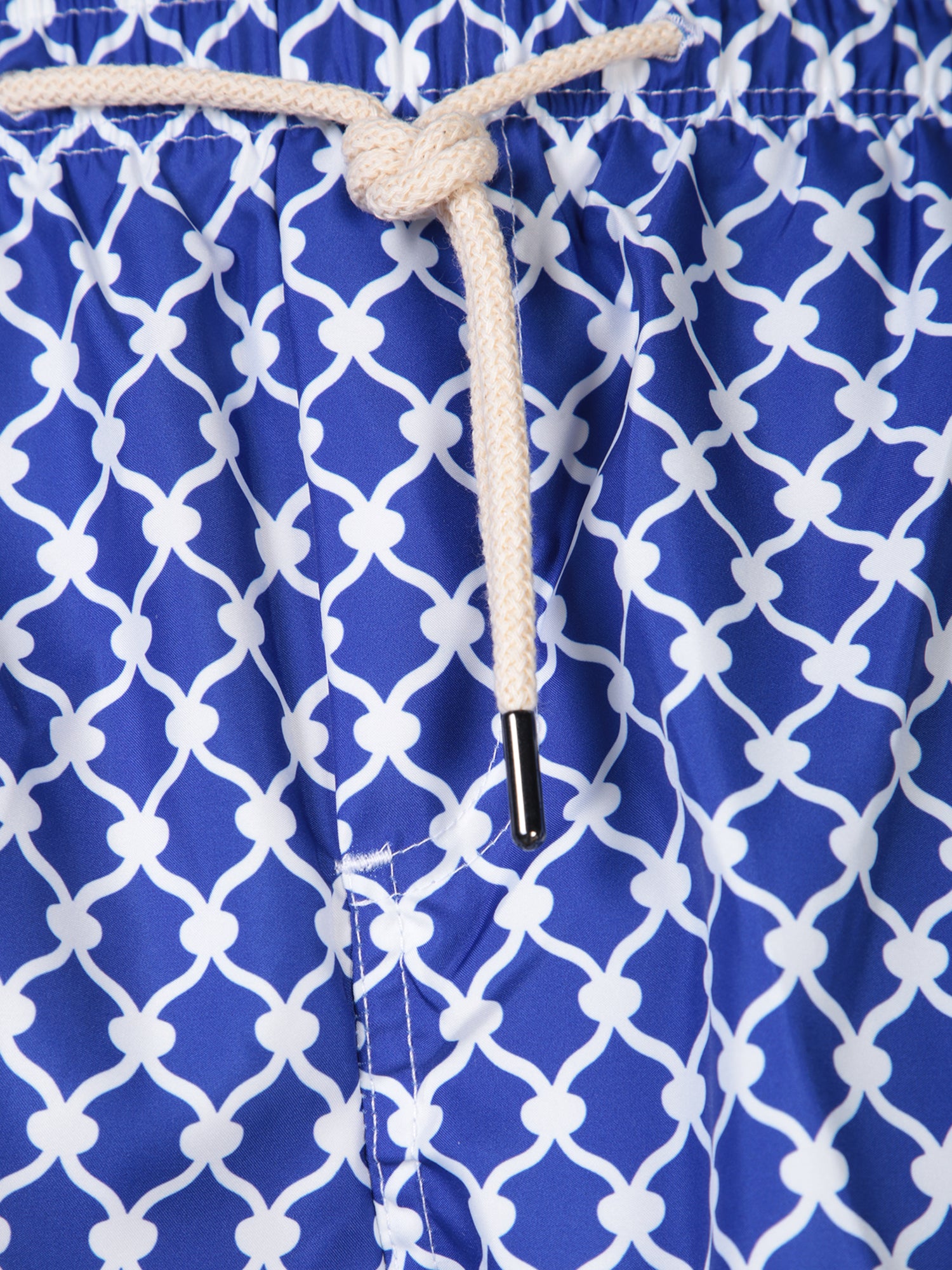Boxer swim shorts with a graphic print. Lightweight and quick-drying fabric. Adjustable drawstring waist.