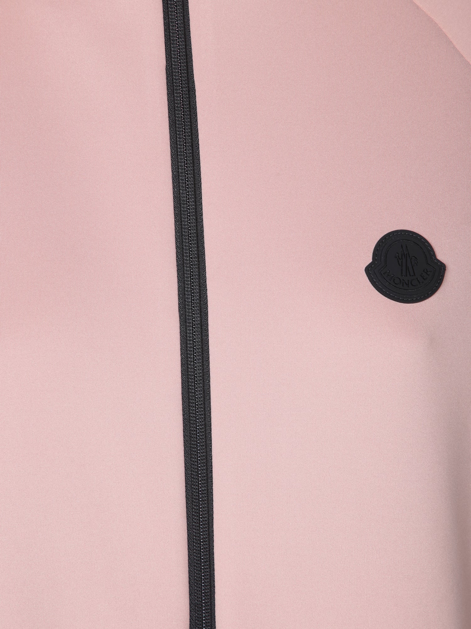 Pink technical fabric cardigan. Front zip closure. Side pockets. Applied logo on the sleeve.